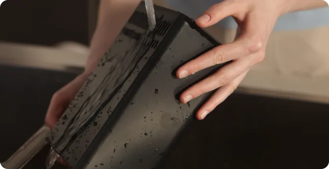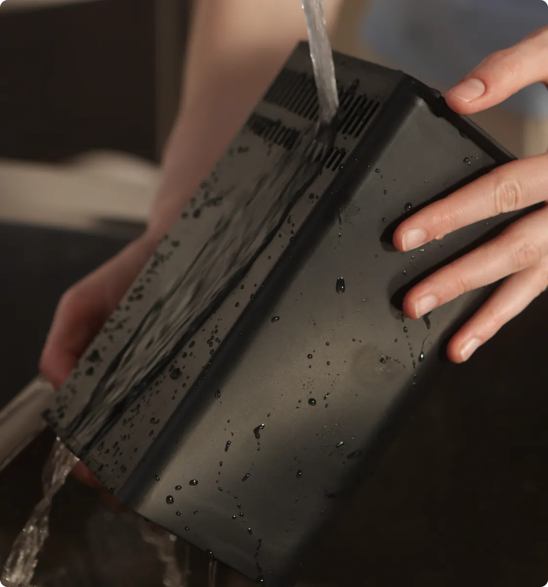 Spülen Sie den Filter einfach mit sauberem Wasser aus und lassen Sie ihn trocknen, um seine Leistung wiederherzustellen. Dies ermöglicht eine mehrfache Verwendung und verlängert die Lebensdauer des Filters.*