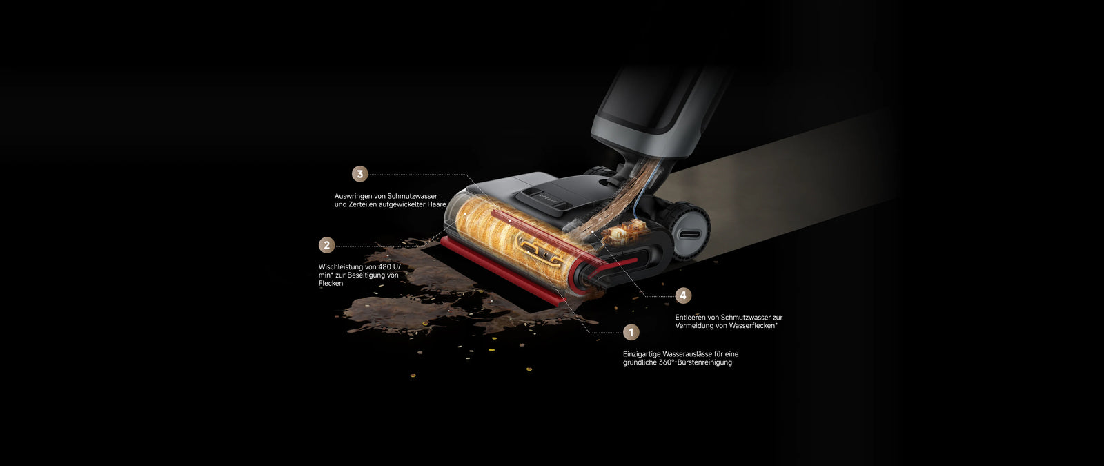 *Keine Schäden an Holzböden: Reinigen Sie Holzböden im Warmwassermodus ohne Schäden wie Verformung, Kratzer oder Farbveränderungen zu verursachen, basierend auf den Daten des TÜV SÜD (China) Shanghai. Bericht-Nr.: 704012410345-00.