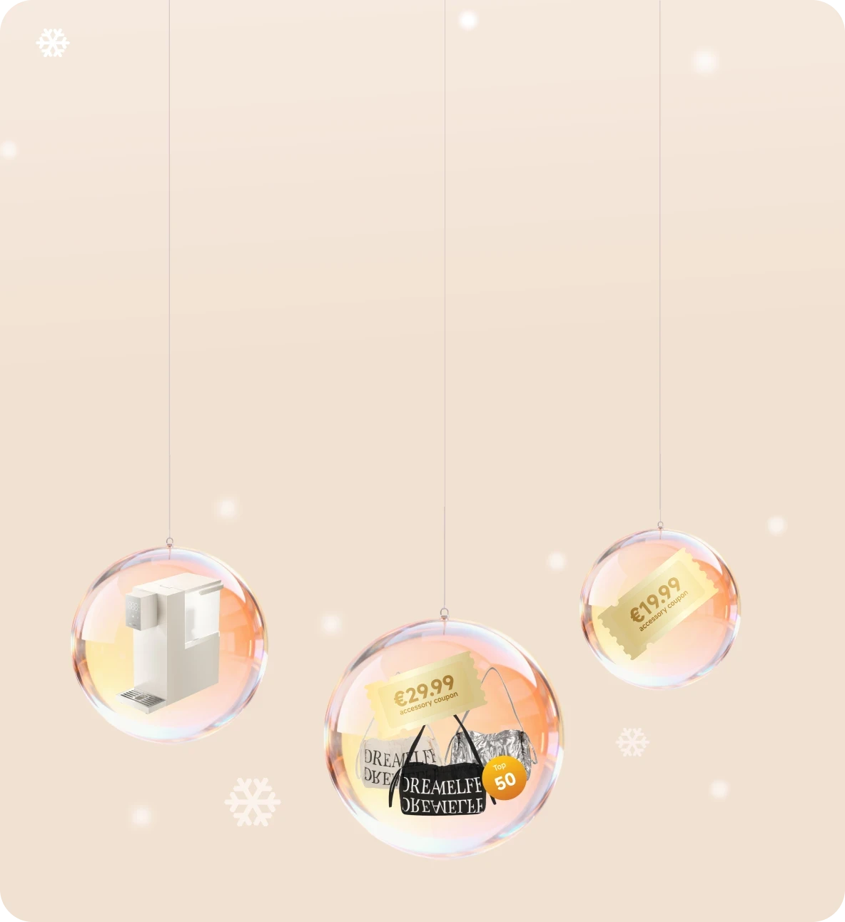Teilnahmeberechtigung: Alle Bestellungen, die während des Aktionszeitraums im offiziellen Dreame Website Store aufgegeben werden, sind für die folgenden gestuften Geschenke basierend auf dem Gesamtbestellwert berechtigt: