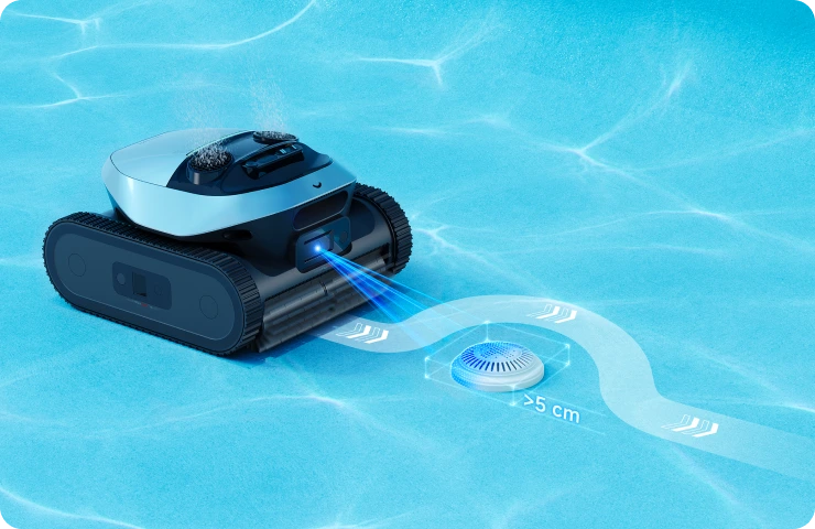 Dank der fortschrittlichen PoolSense™-Technologie erkennt der Z1 Pro zuverlässig häufig auf dem Boden Ihres Pools vorkommende Hindernisse. Mit seinem größeren Erkennungsbereich und seiner Fähigkeit, selbst die kleinsten Hindernisse erkennen zu können, umgeht er diese geschickt, ohne stecken zu bleiben.