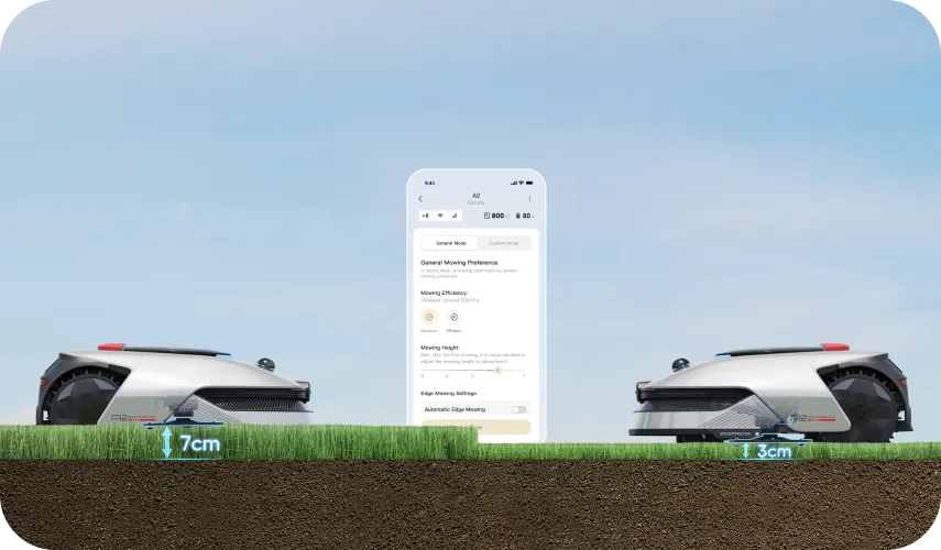 Durch die LiDAR-Rasterabtastung und die fortschrittlichen visuellen Algorithmen erkennt und unterscheidet der A2 präzise zwischen Grasflächen und anderen Bereichen. Er navigiert schnell durch Ihren Garten, scannt ihn, legt Begrenzungen fest und ermöglicht es Ihnen, Ihre Freizeit in vollen Zügen zu genießen.