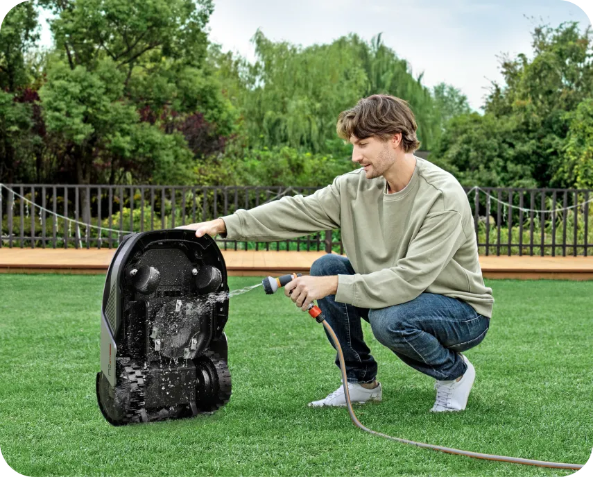 Mit dem A2 genießen Sie eine Rasenpflege ohne Zwischenfälle. Wenn die Batterieleistung des A2 unter 15 % fällt, fährt er automatisch zur Ladestation zurück, lädt sich vollständig auf und macht sich dann wieder an die Arbeit.