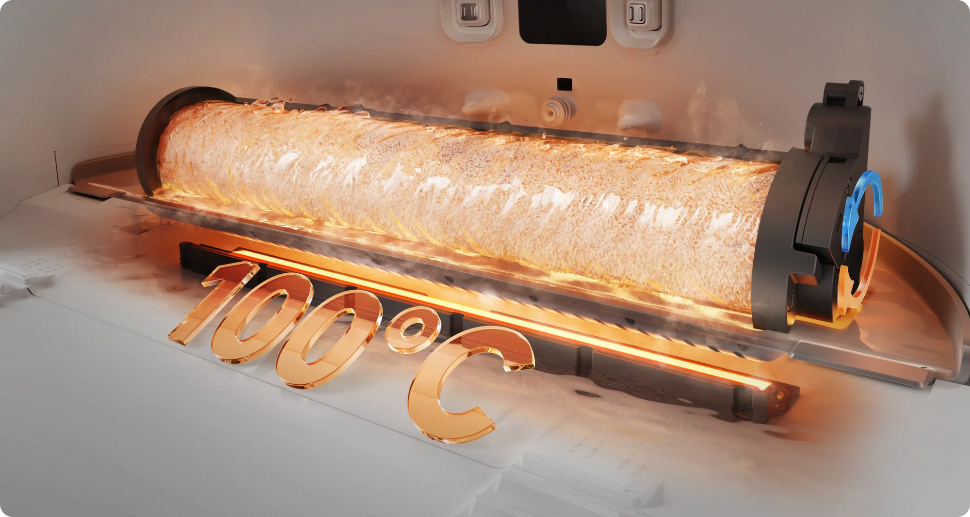 *100 °C heißes Wasser: Die Temperaturen über dem PTC-System des Waschbretts können nach dem Erwärmen bei Raumtemperatur (ca. 23 °C) 100 °C erreichen, basierend auf Daten aus unserem internen Labor. Die tatsächliche Temperatur kann abweichen.