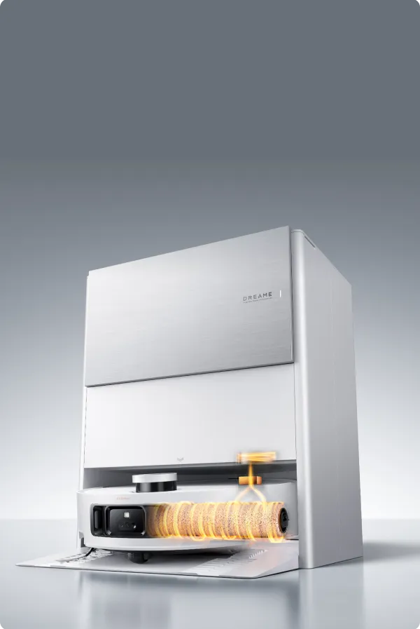 Mit seiner ThermoHub™-Selbstreinigungsfunktion gönnt sich der Saugroboter nach getaner Arbeit ein „heißes Bad“ bei 100 °C*. Dabei dreht er sich in der Basisstation vor und zurück, entfernt hartnäckige Flecken und neutralisiert Gerüche, die dem Rollen-Wischmopp anhaften.