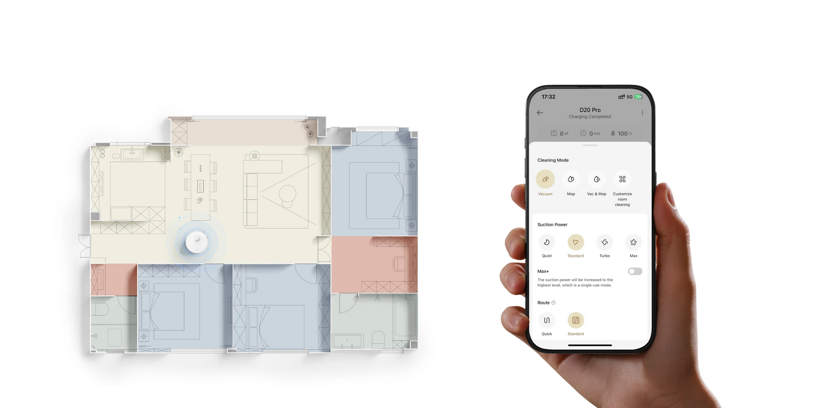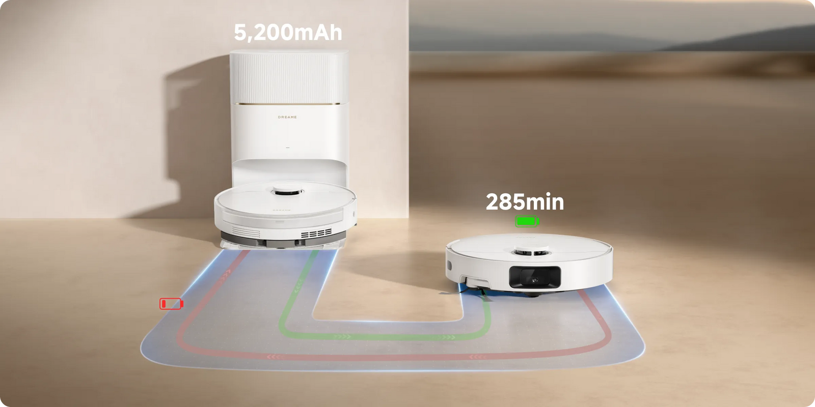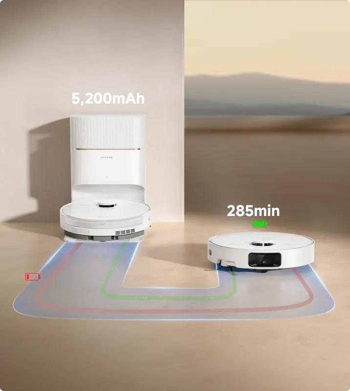 *285 min: basierend auf Daten aus unserem internen Labor im Saug- und Wischmodus. Die tatsächliche Leistung kann abweichen.