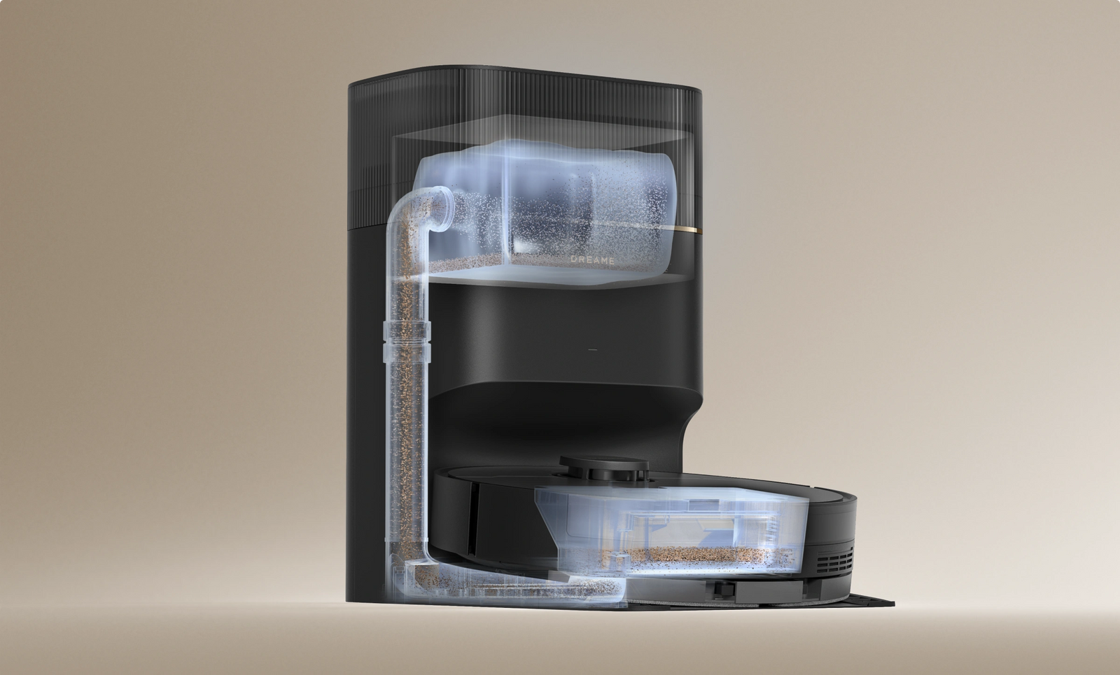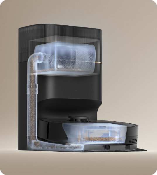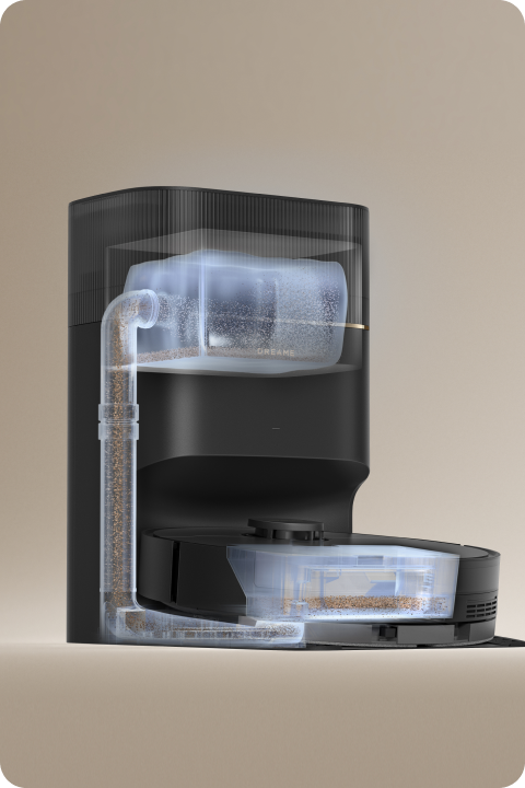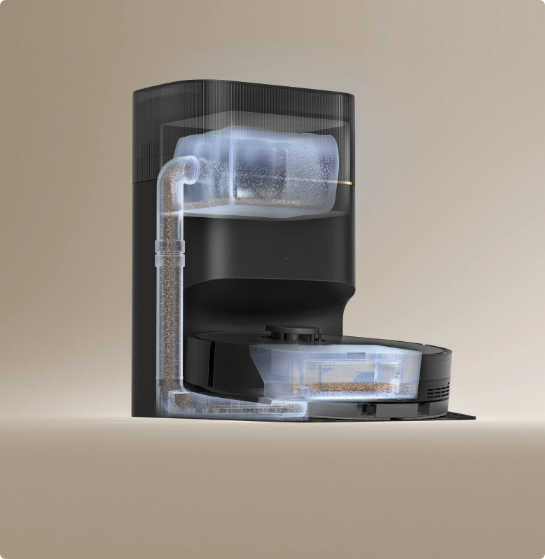 Vereinfachen Sie Ihre Reinigungsaufgaben mit unserem bequemen Staubaufnahmesystem, das eine automatisierte Entleerung des Staubbehälters für eine problemlose Staubentsorgung bietet.