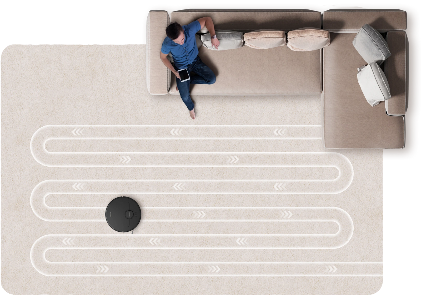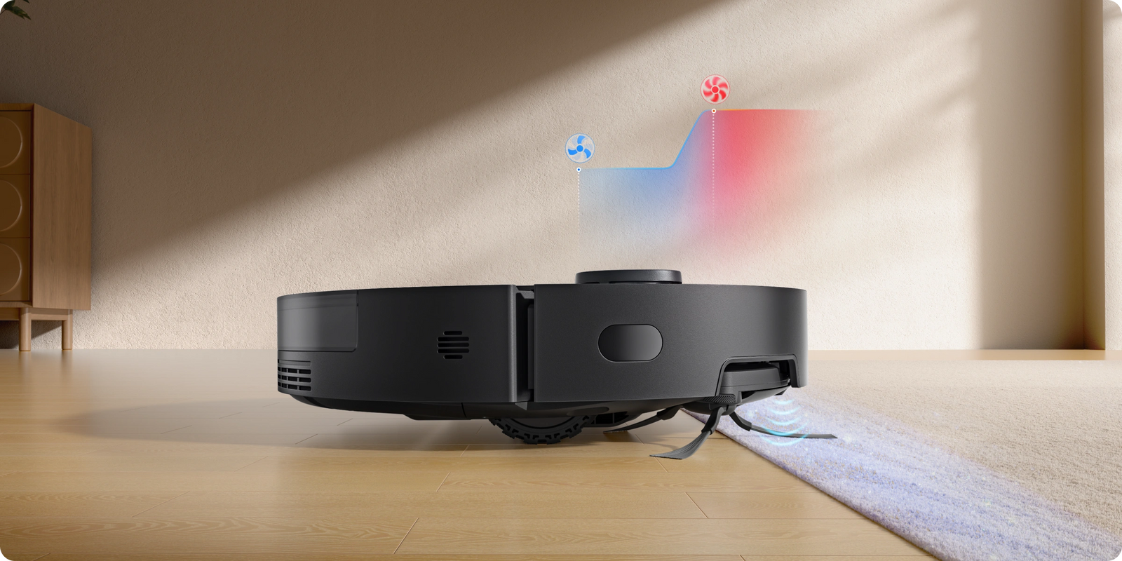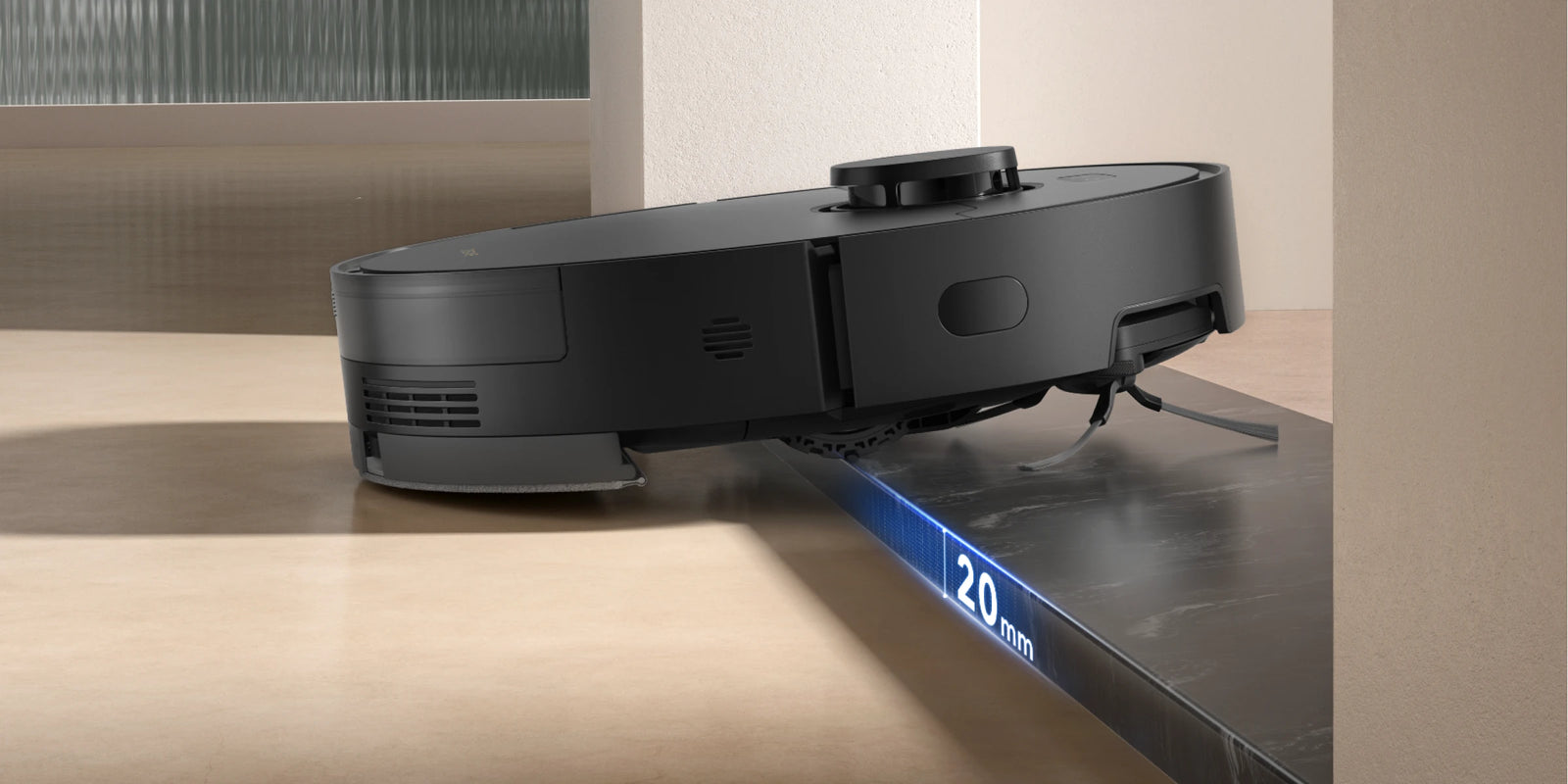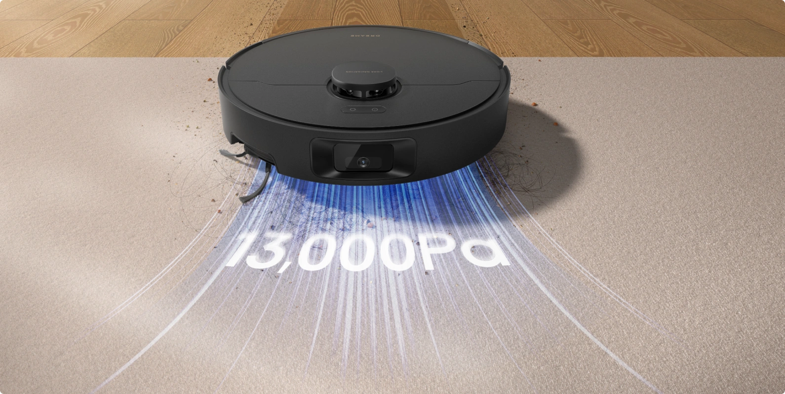 Teppiche erkennt der D20 Pro Plus präzise per Ultraschallsensorik – die Saugkraft wird automatisch erhöht, um festsitzenden Schmutz effektiv zu entfernen.