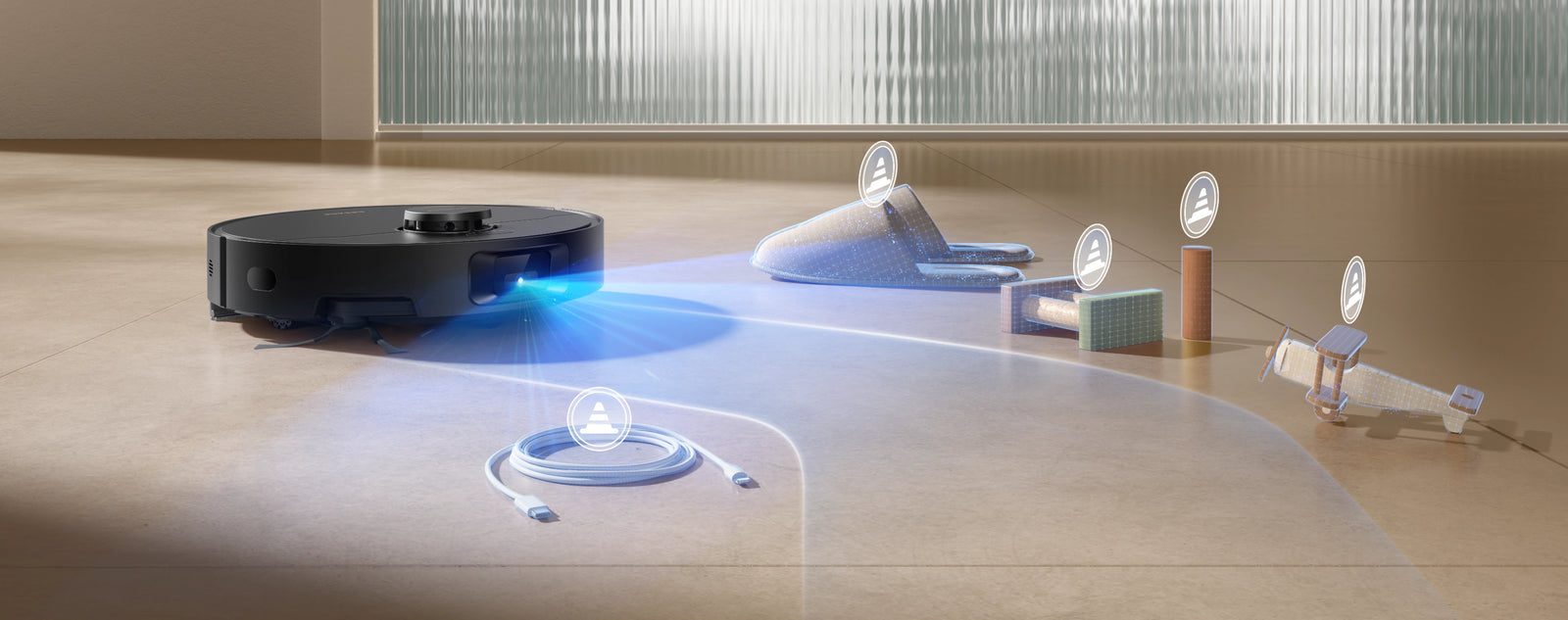 Während der gründlichen Reinigung werden Hindernisse präzise umfahren. Individuelle No-Go-Zonen und die Anti-Sturz-Technologie garantieren eine sichere und effiziente Reinigung in Ihrem Zuhause.