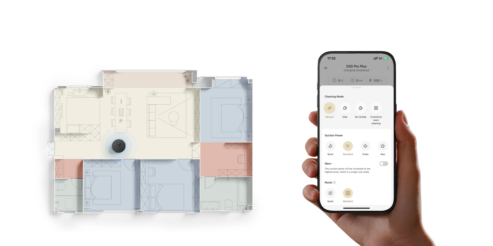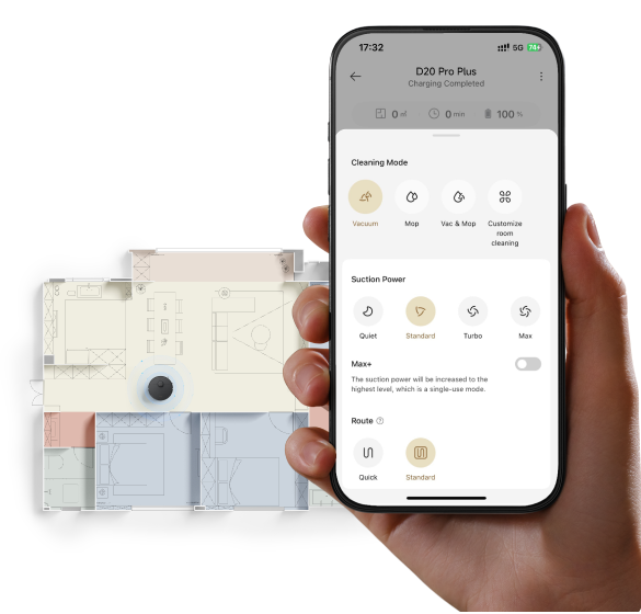 Optimieren Sie über die Dreamehome-App die Reinigung und lassen Sie jeden Raum individuell reinigen.