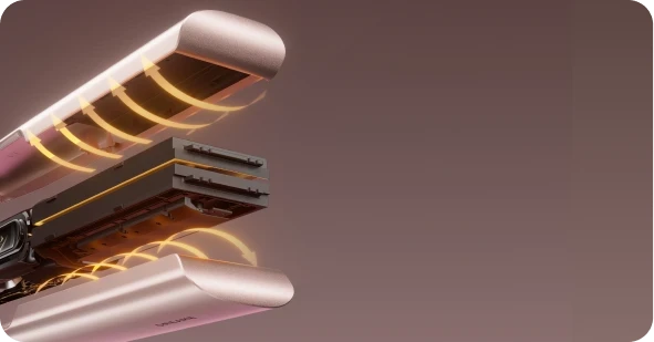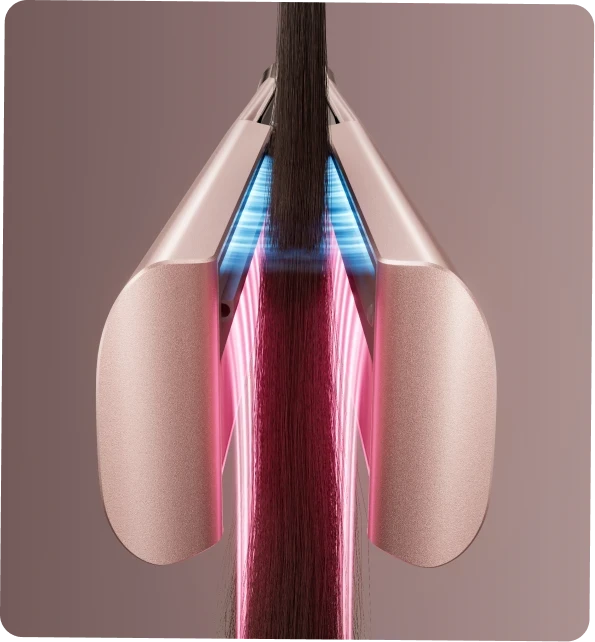 *Basierend auf internen Tests im Gegensatz zu konventionellen Glätteisen. Die Ergebnisse können abhängig von Haartyp und Anwendungsbedingungen abweichen.