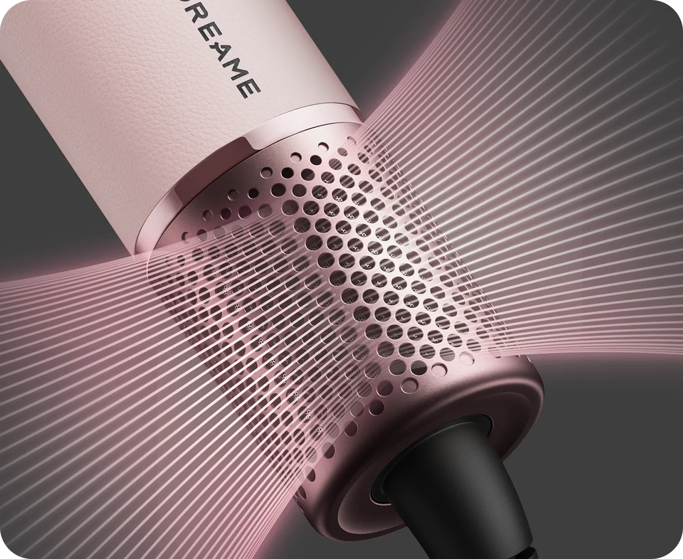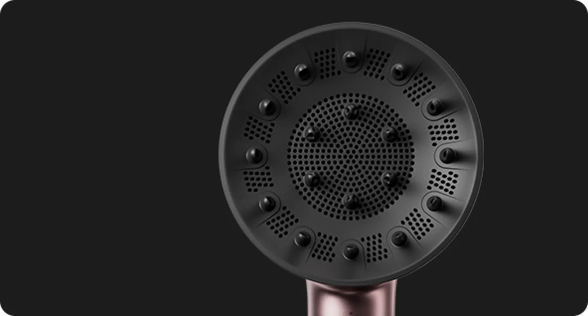 *65 m/s: Daten aus unserem internen Labor, gemessen im „High-Speed-Airflow“-Modus mit aufgesetztem Schnellhaartrockner.