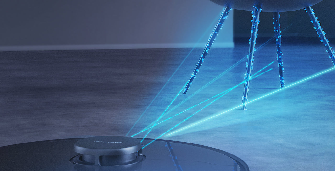 Der D9 Max mit 360°-Scanner und Lasernavigationstechnologie erstellt bereits beim ersten Durchlauf eine bearbeitbare Karte des Bodens Ihrer Wohnung. In der Zwischenzeit reinigt er methodisch, anstatt wahllos von Wand zu Wand zu springen.