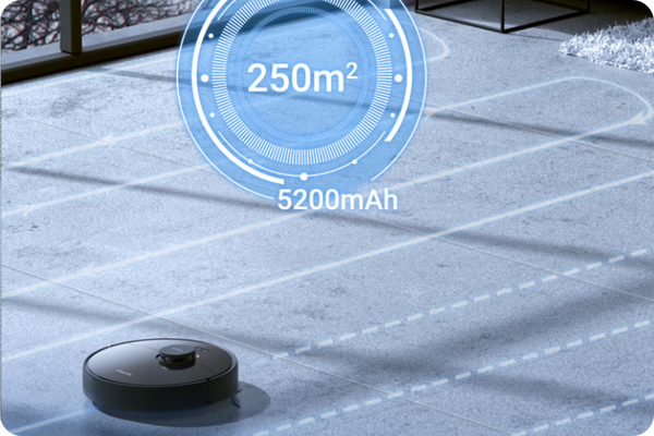 Reinigt bis zu 250㎡* mit einer Akkuladung.