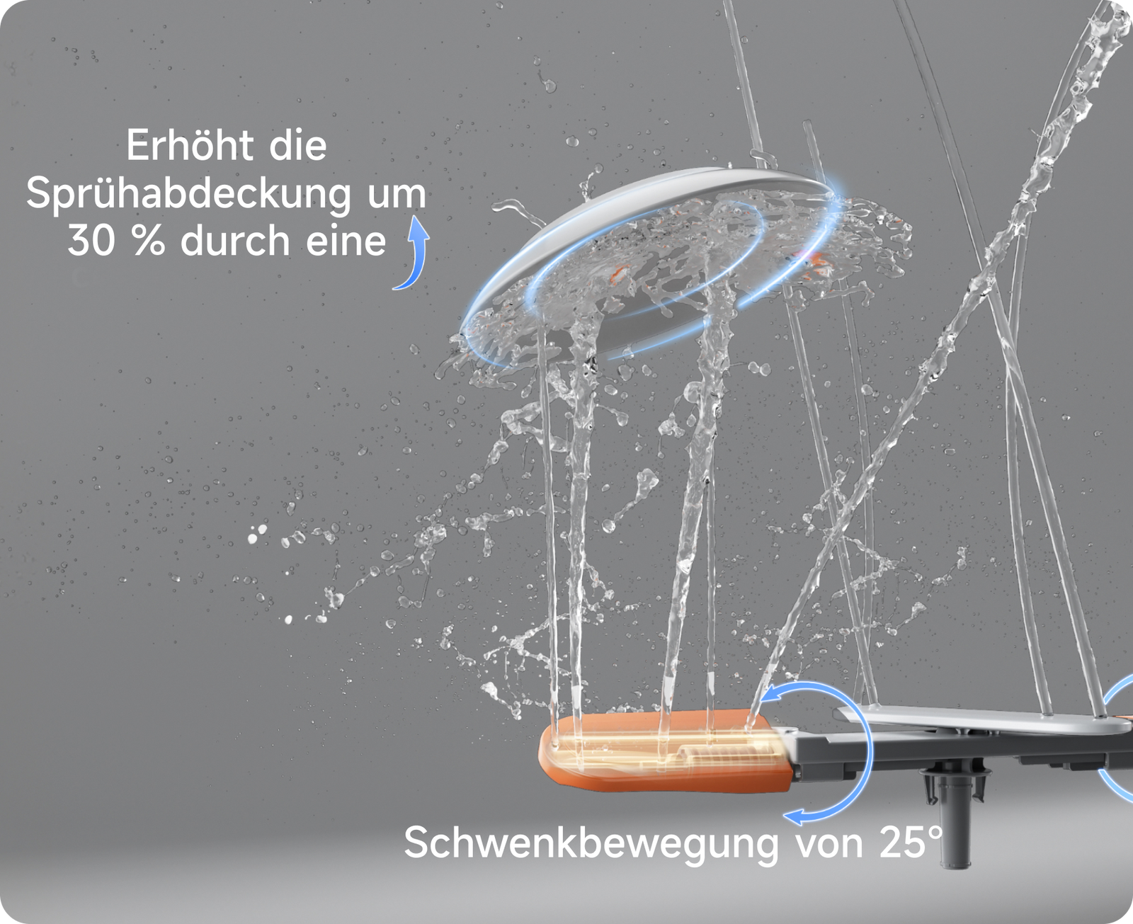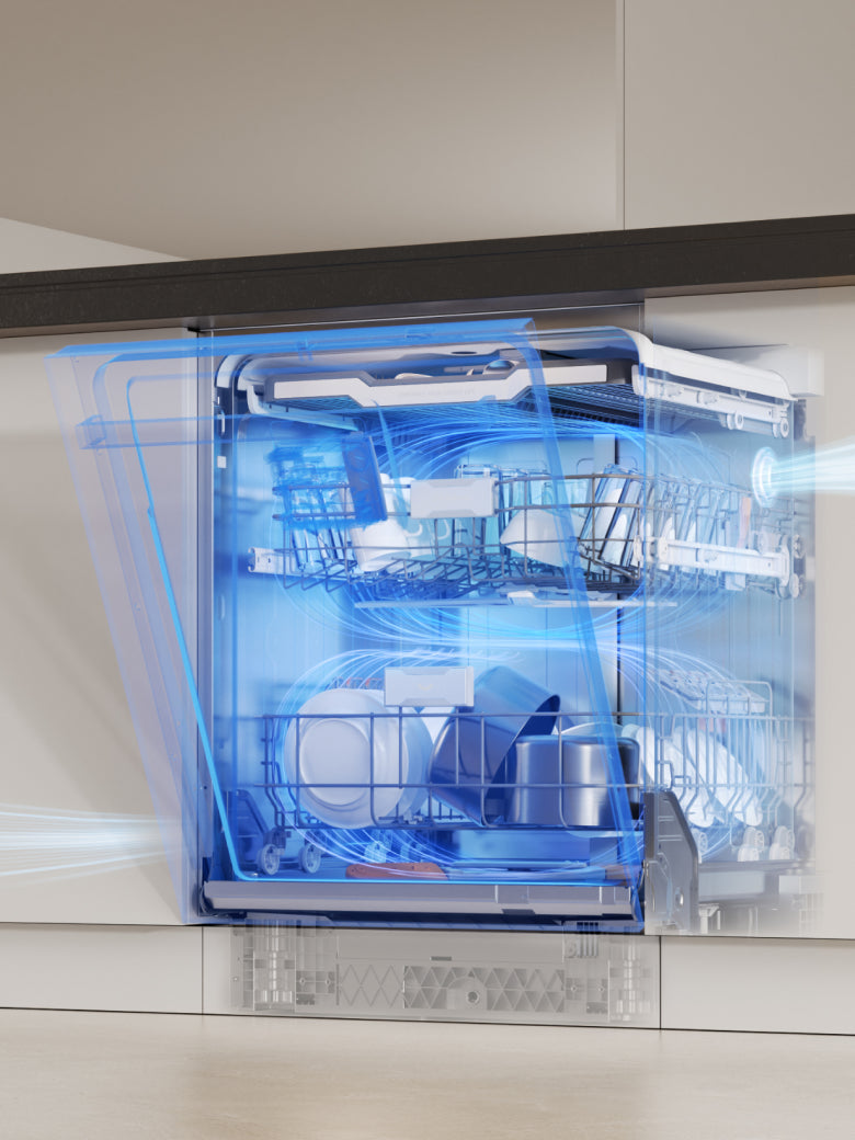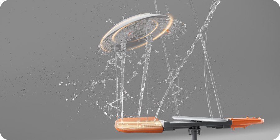 Im Gegensatz zu herkömmlichen Sprüharmen, die sich in festen Winkeln drehen und auf Wasserspritzer angewiesen sind, um bestimmte Bereiche zu erreichen, schwenkt der Dreame-Sprüharm an beiden Enden dynamisch um 25°. Dank der aktiven Steuerungstechnologie werden Hochdruckstrahlen präzise auf jedes einzelne Geschirrteil gelenkt – selbst auf „blinde Zonen“ wie Korbränder oder eng gestapeltes Geschirr, die bei herkömmlichen Designs oft unzureichend gereinigt werden.