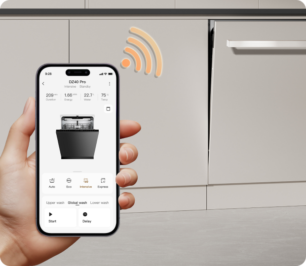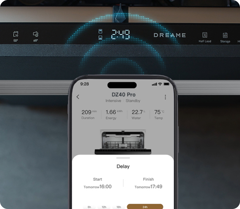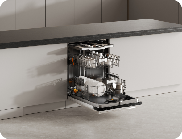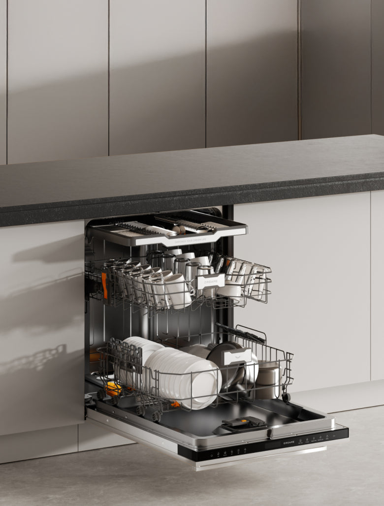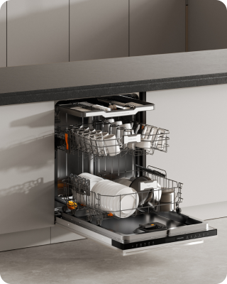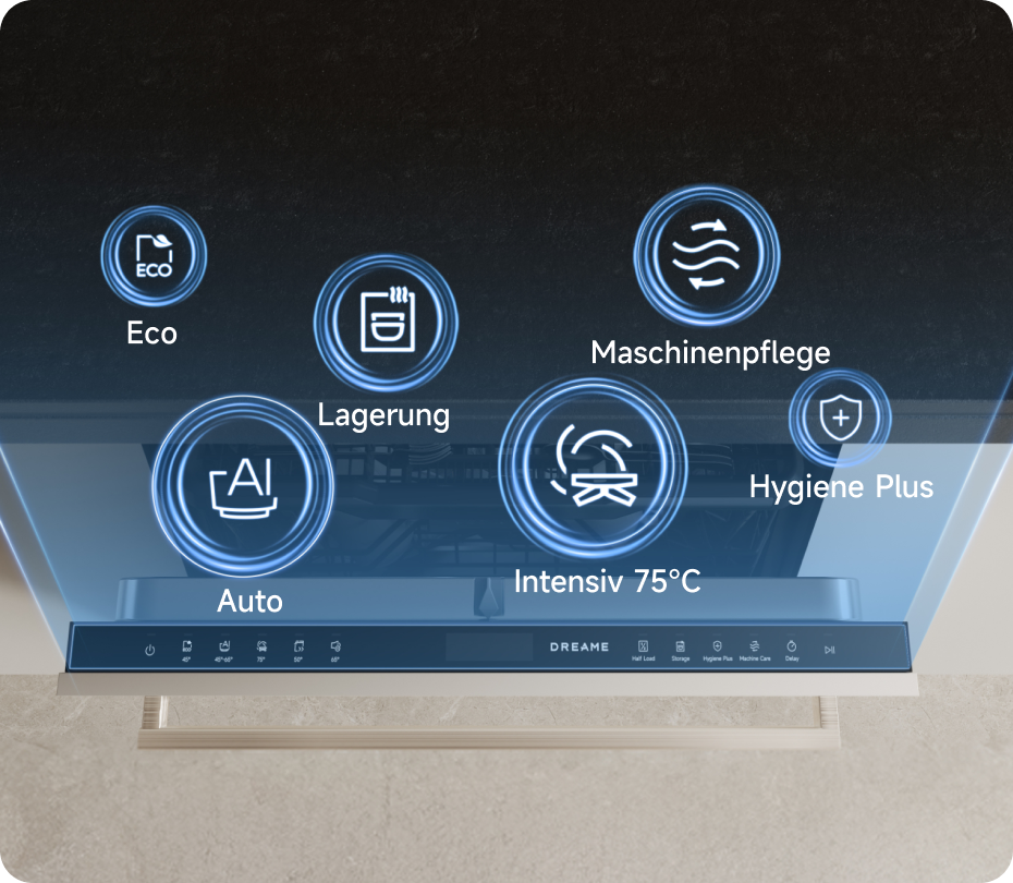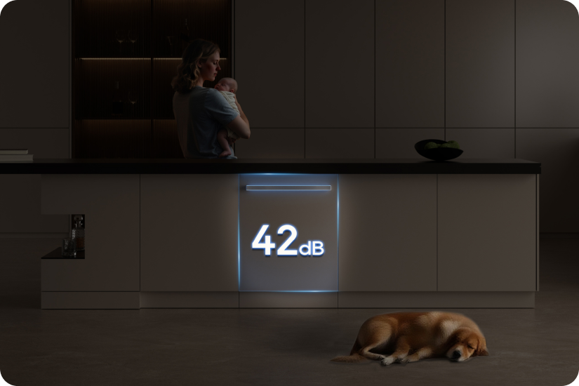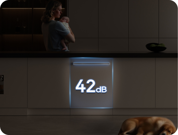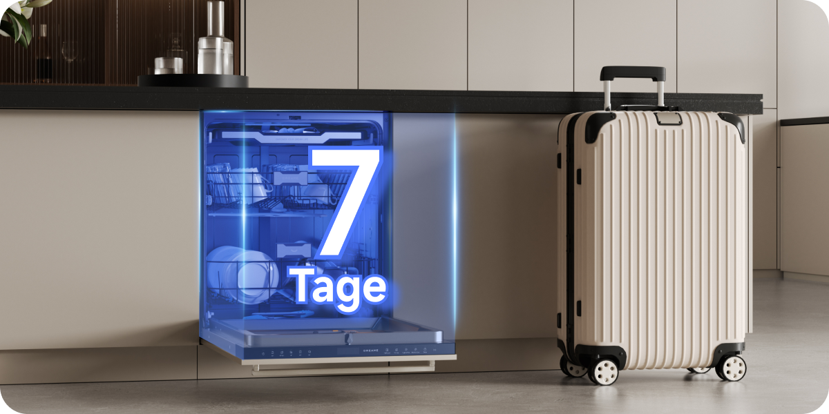 Der Dreame-Geschirrspüler arbeitet mit einem niedrigen Geräuschpegel von 42 dB(A) und ermöglicht so einen leisen Betrieb – selbst in offenen Küchen oder während der Nacht.