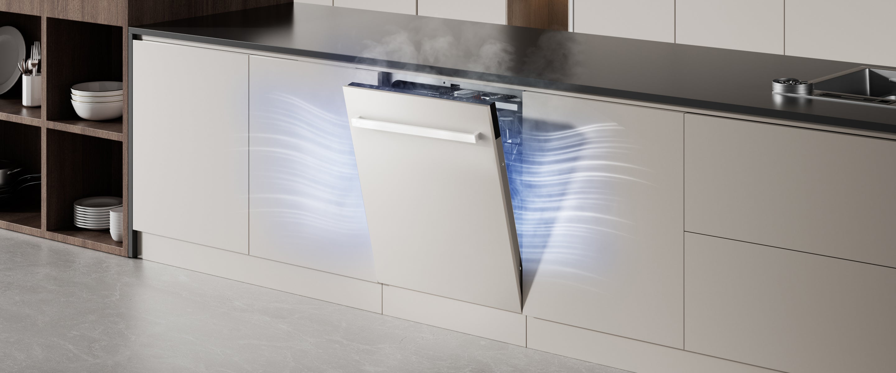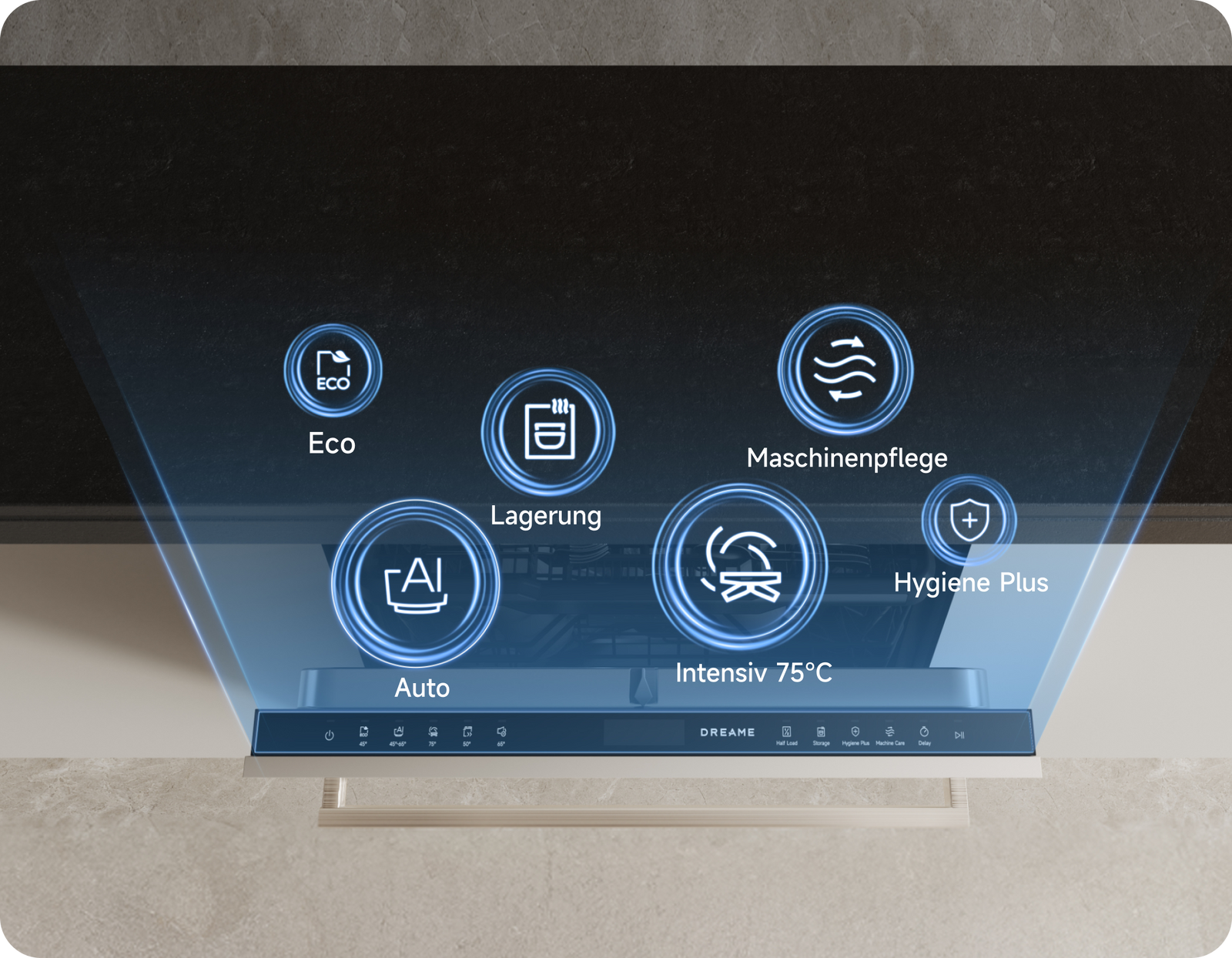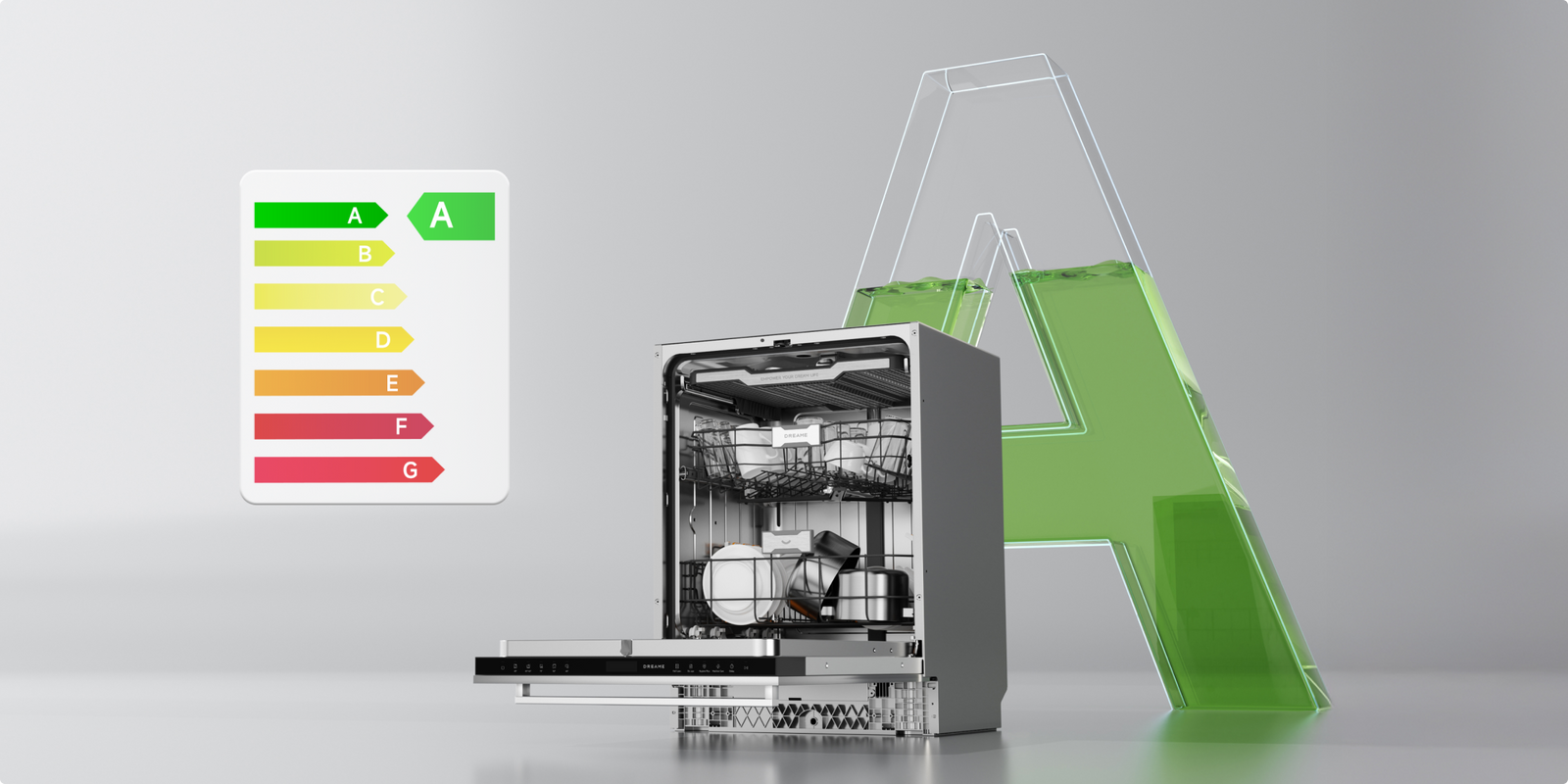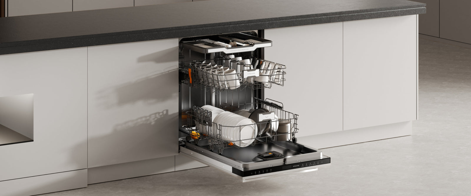 Der Dreame-Geschirrspüler arbeitet mit einem niedrigen Geräuschpegel von 42 dB(A) und ermöglicht so einen leisen Betrieb – selbst in offenen Küchen oder während der Nacht.