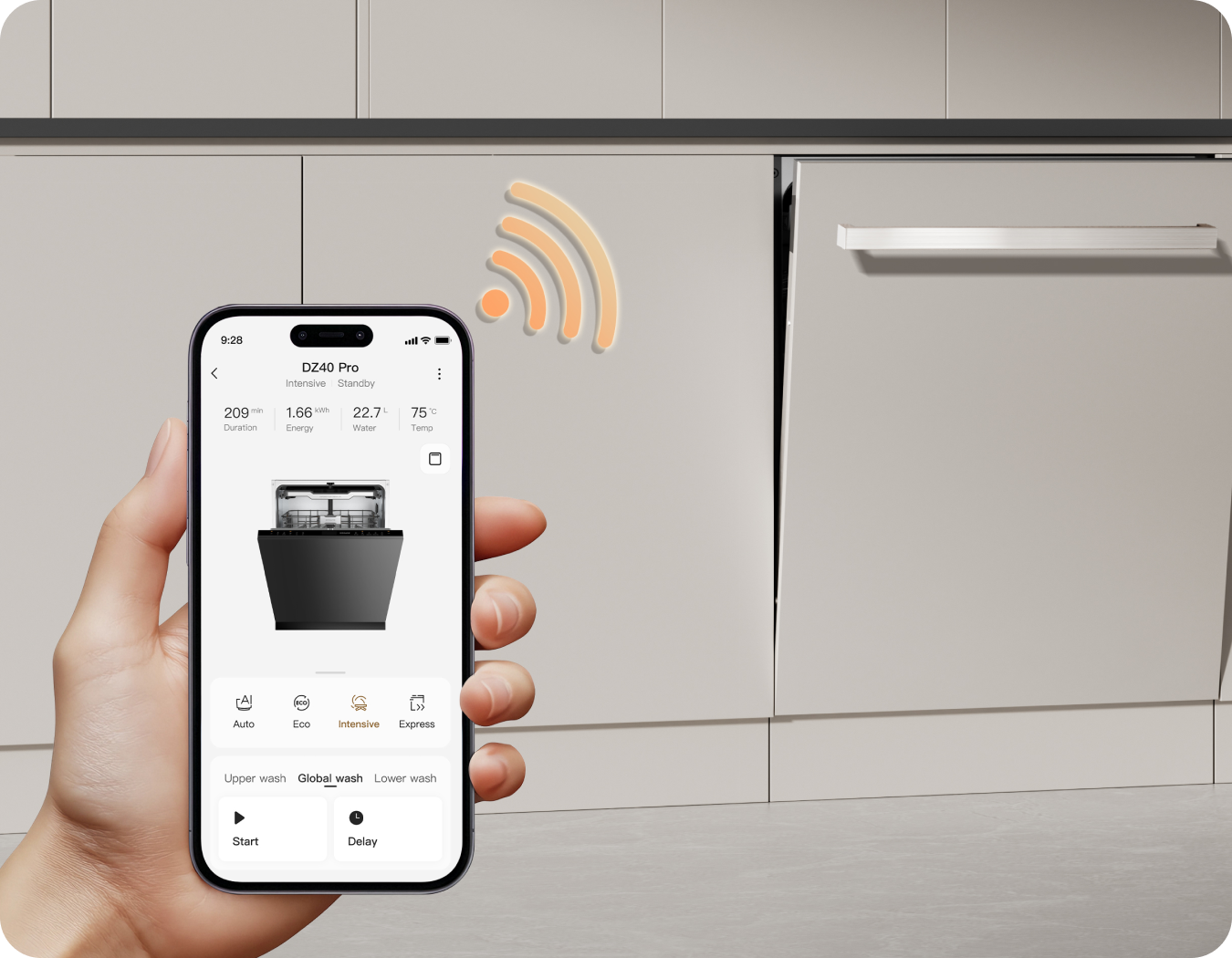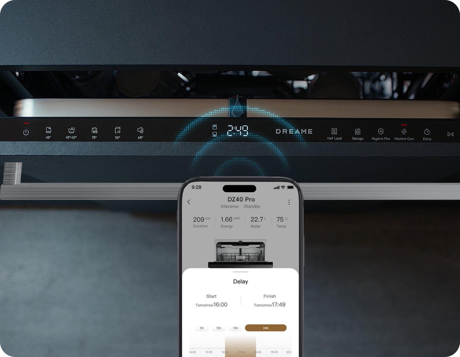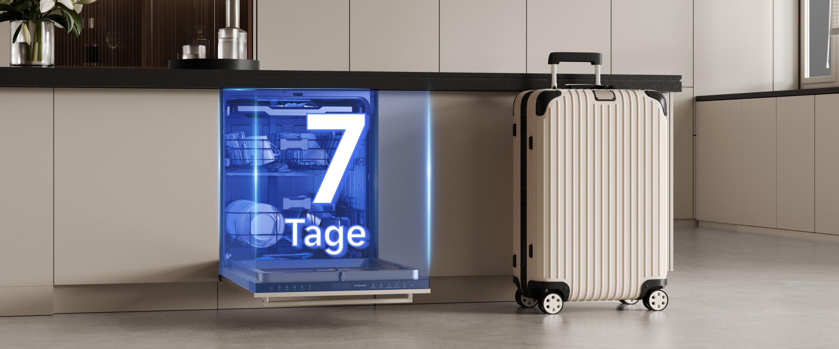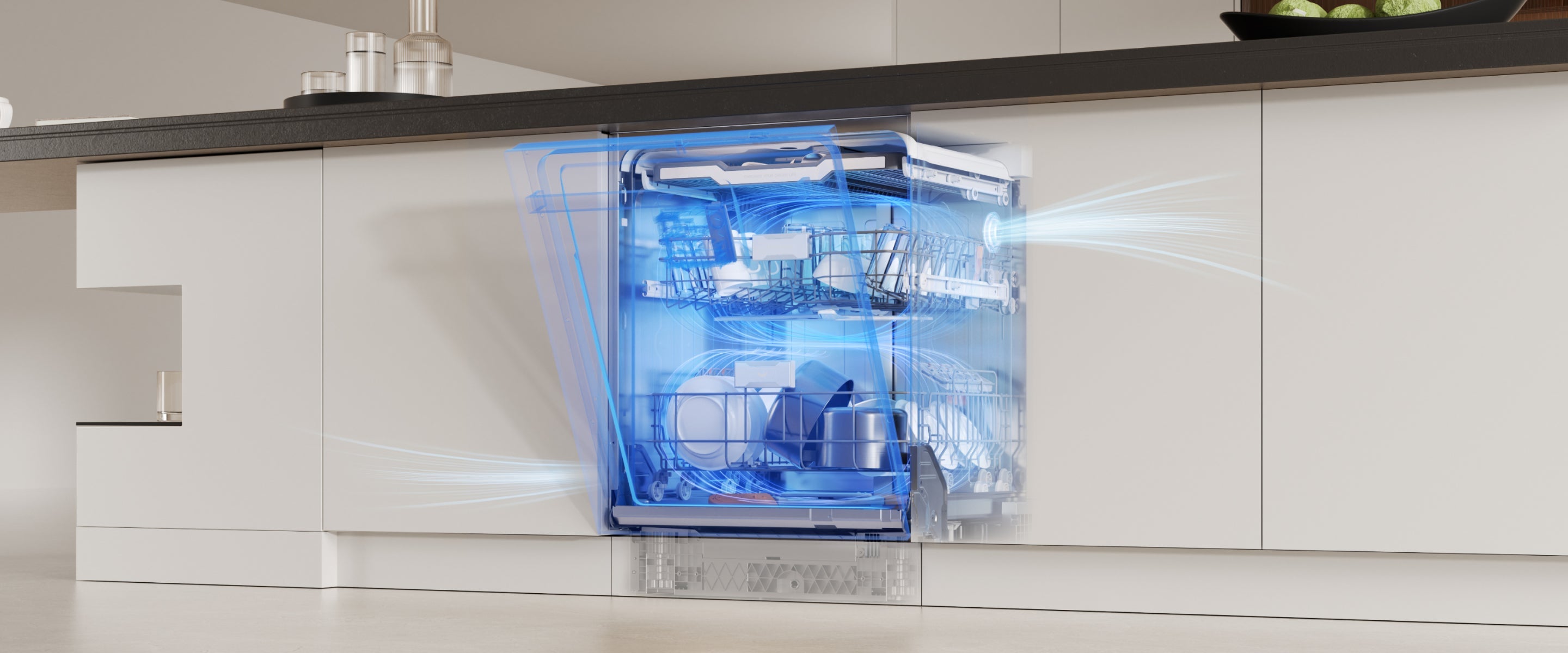 Der Dreame-Geschirrspüler arbeitet mit einem niedrigen Geräuschpegel von 42 dB(A) und ermöglicht so einen leisen Betrieb – selbst in offenen Küchen oder während der Nacht.