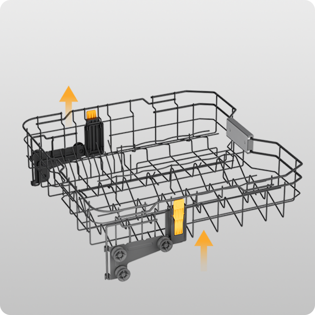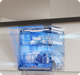 Das Waschsystem in Kombination mit einem 75 °C-Hochtemperaturprogramm entfernt Fett und Gerüche effektiv – selbst bei unregelmäßig beladenem Geschirr. Die dreistufigen Sprüharme erhöhen die Abdeckung um 30 %. Der obere lineare Sprüharm sorgt für eine vollständige Spülung der gesamten Oberfläche, der mittlere Dreifacharm führt drei Spülgänge in einer Umdrehung durch und der untere Arm verfügt über den innovativen FlexWing-Sprüharm. Dieser Arm verfügt über eine Doppel- und eine Drehdüse, deren beide Enden um 25° schwenkbar sind, um Hochdruckstrahlen abzugeben, wodurch die Abdeckung um 30 % erhöht wird. So werden beide Seiten des Geschirrs gezielt gereinigt – gründlich und rückstandsfrei.
