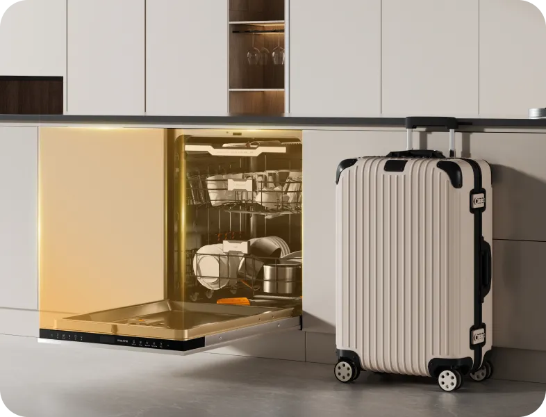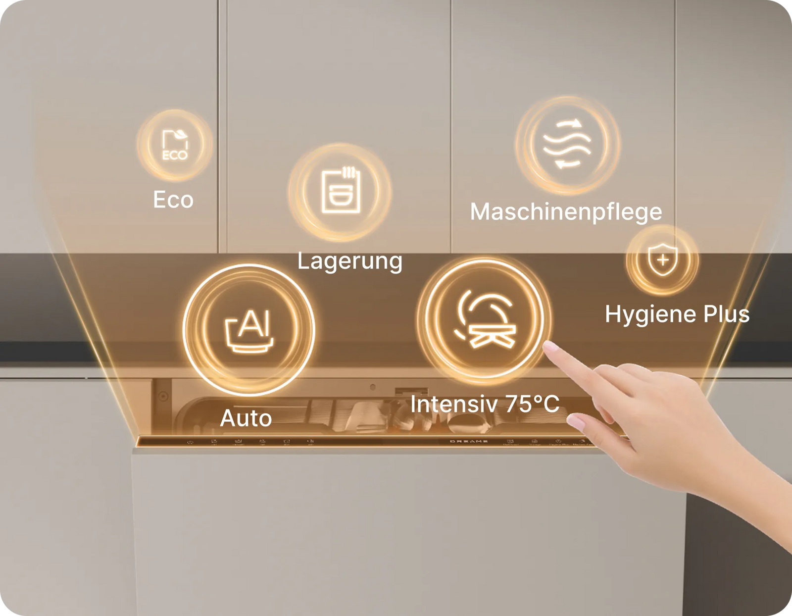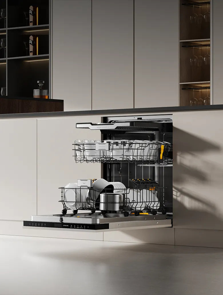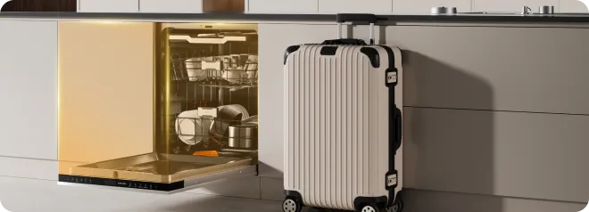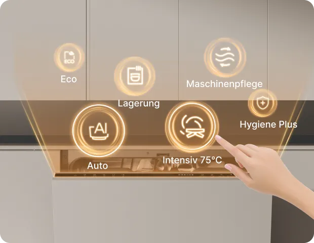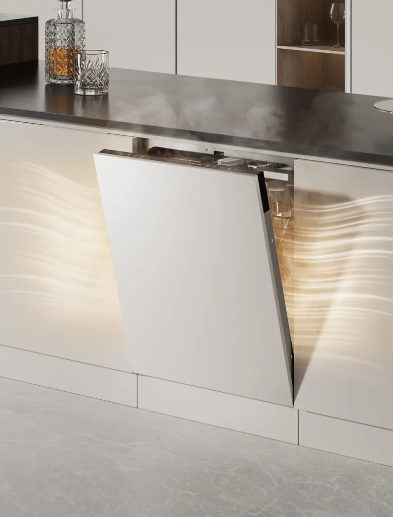 Der Geschirrspüler nutzt die Dual-Drying-Technologie mit automatischem Türöffnen und ventilatorunterstützter Trocknung, kombiniert mit PTC-Heißluftzirkulation bei geschlossener Tür. Dieses System sorgt für eine gründliche Trocknung sowohl des Geschirrs als auch des Innenraums und entfernt zuverlässig Wasserreste. In feuchten Umgebungen hält der Hochtemperaturluftstrom das Innere trocken und hygienisch und reduziert wirksam das Bakterienwachstum. Im Aufbewahrungsmodus sorgt der Wechsel von warmer und kühler Luft bis zu 15 Tage lang für Frische.