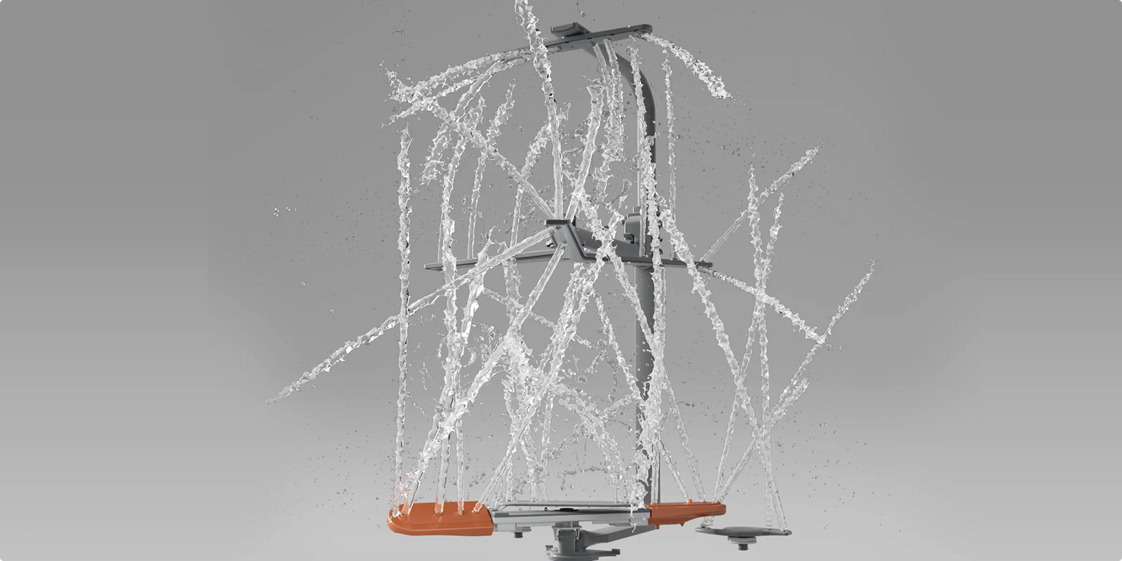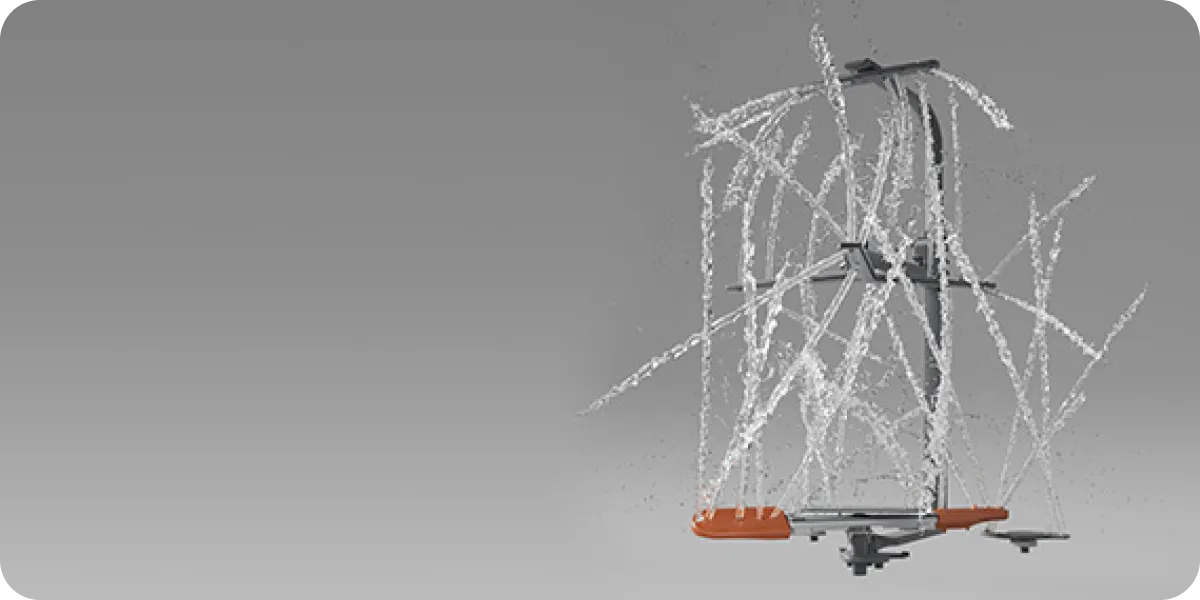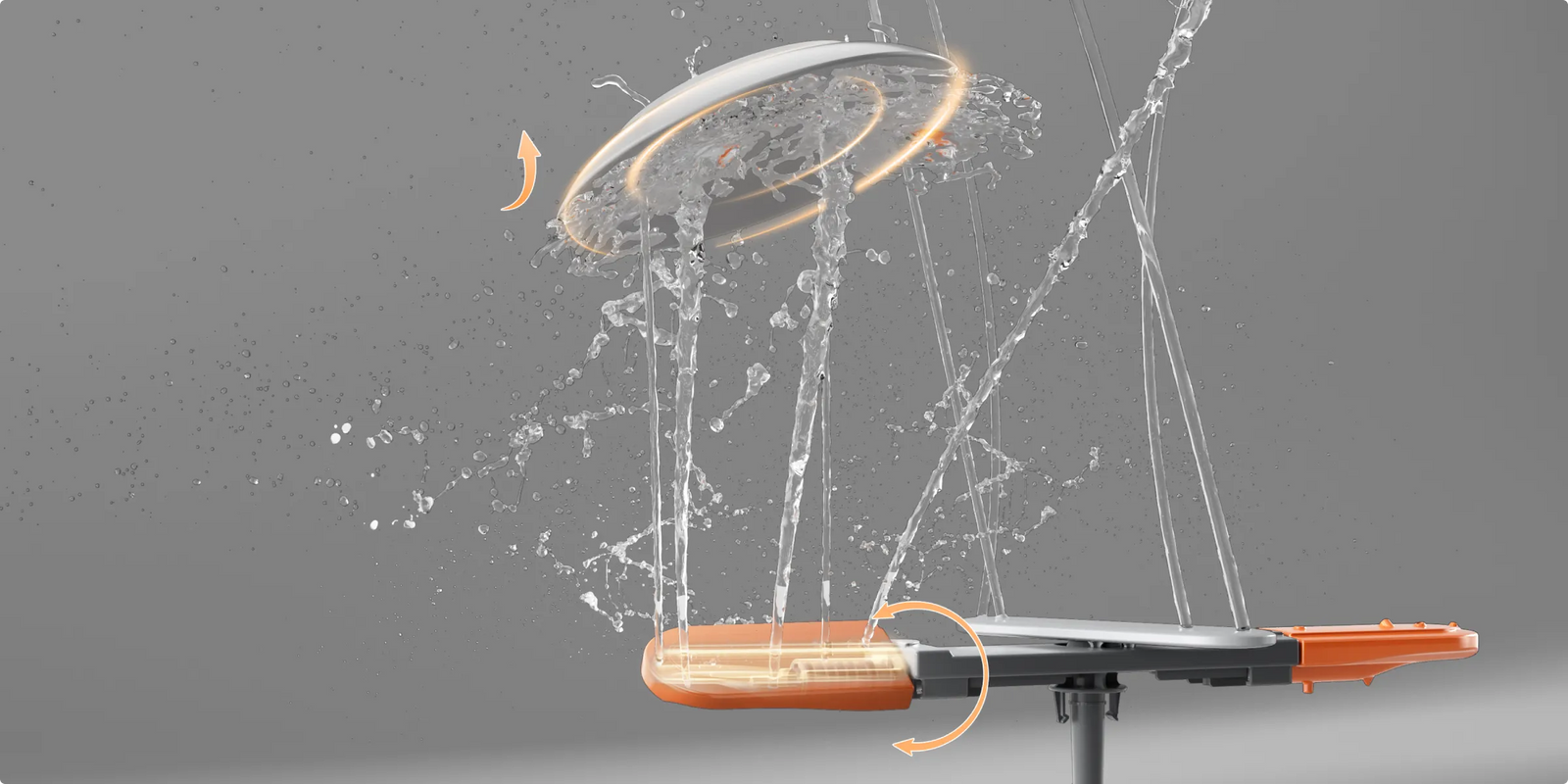 Im Gegensatz zu herkömmlichen Sprüharmen, die sich in festen Winkeln drehen und auf Wasserspritzer angewiesen sind, um bestimmte Bereiche zu erreichen, schwenkt der Dreame-Sprüharm an beiden Enden dynamisch um 25°. Dank der aktiven Steuerungstechnologie werden Hochdruckstrahlen präzise auf jedes einzelne Geschirrteil gelenkt – selbst auf „blinde Zonen“ wie Korbränder oder eng gestapeltes Geschirr, die bei herkömmlichen Designs oft unzureichend gereinigt werden.