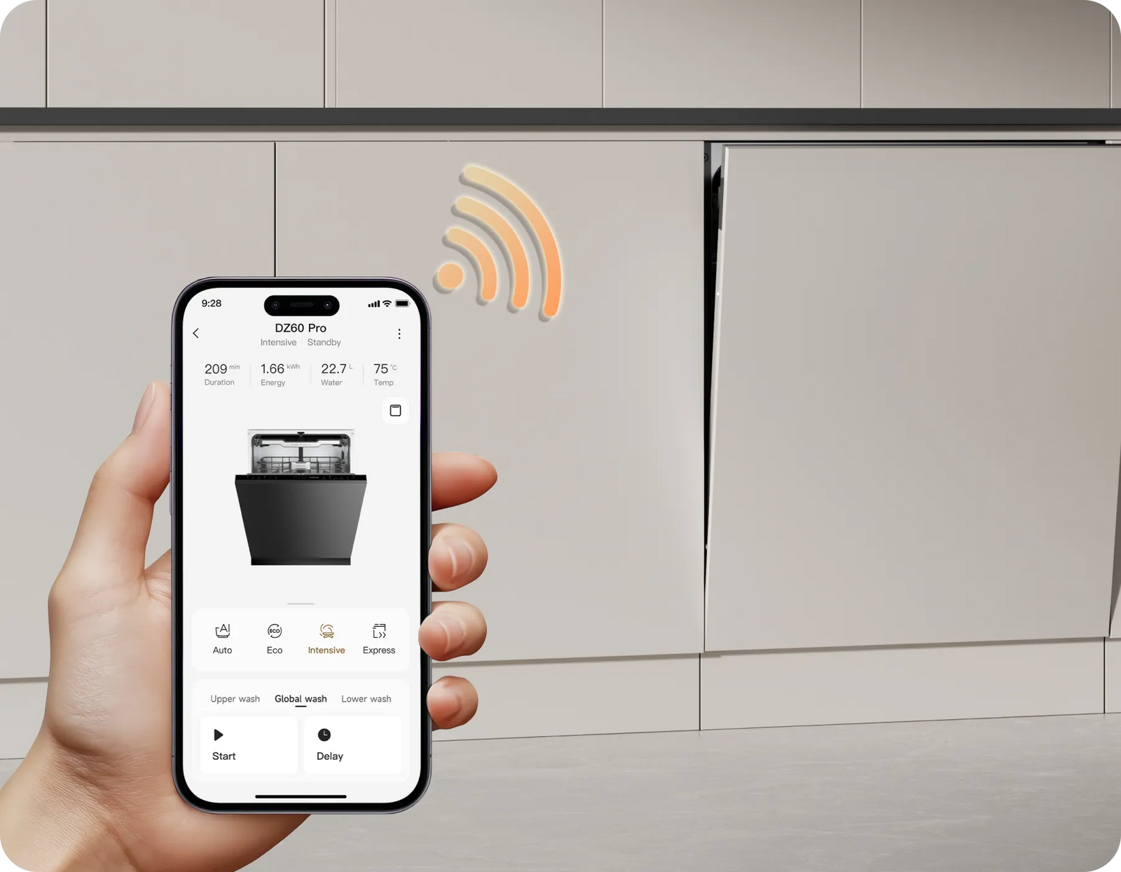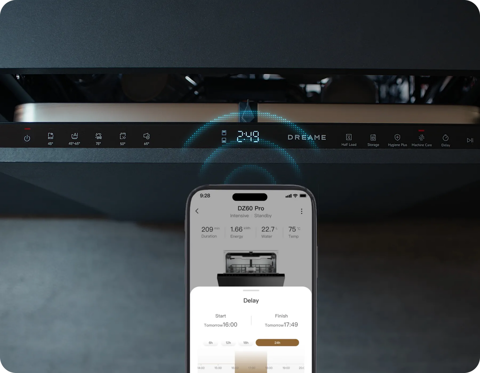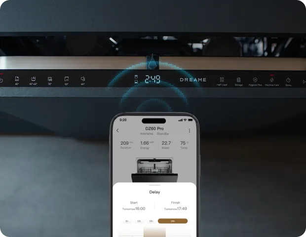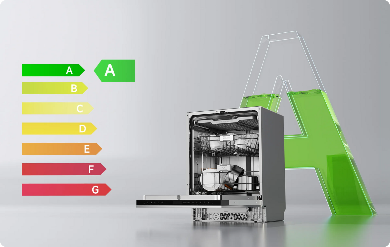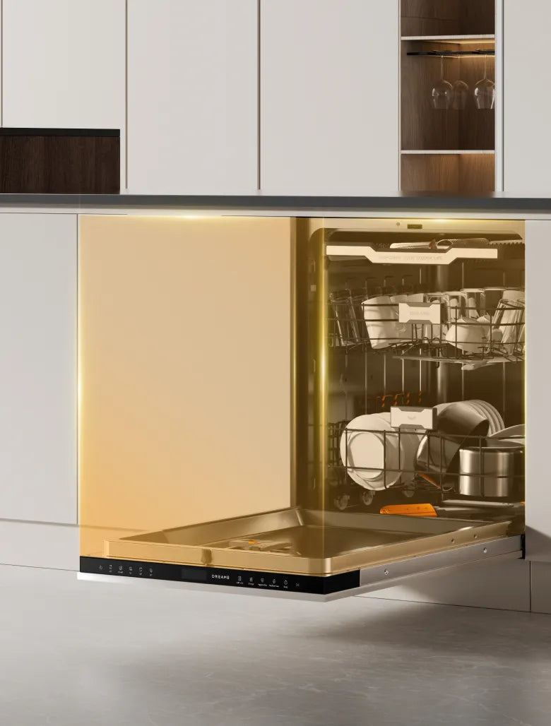 Der Dreame-Geschirrspüler arbeitet mit einem niedrigen Geräuschpegel von 42 dB(A) und ermöglicht so einen leisen Betrieb – selbst in offenen Küchen oder während der Nacht.