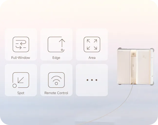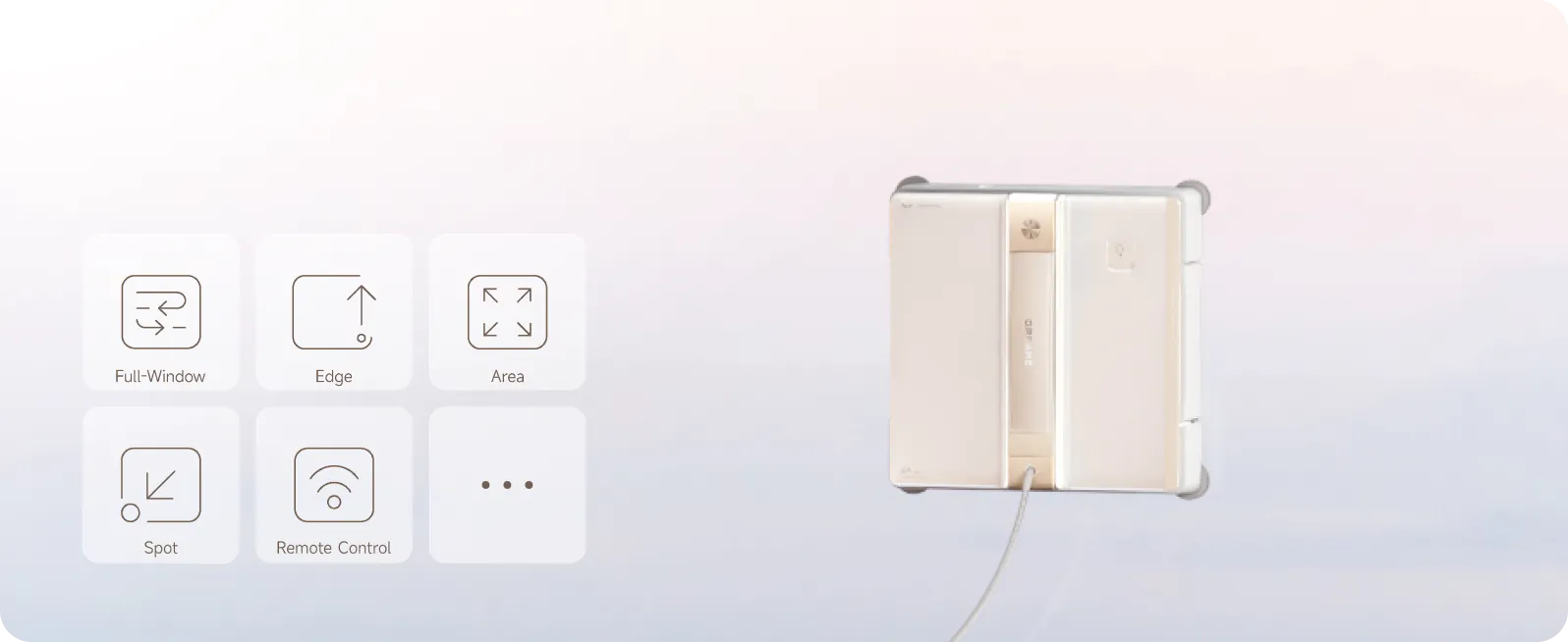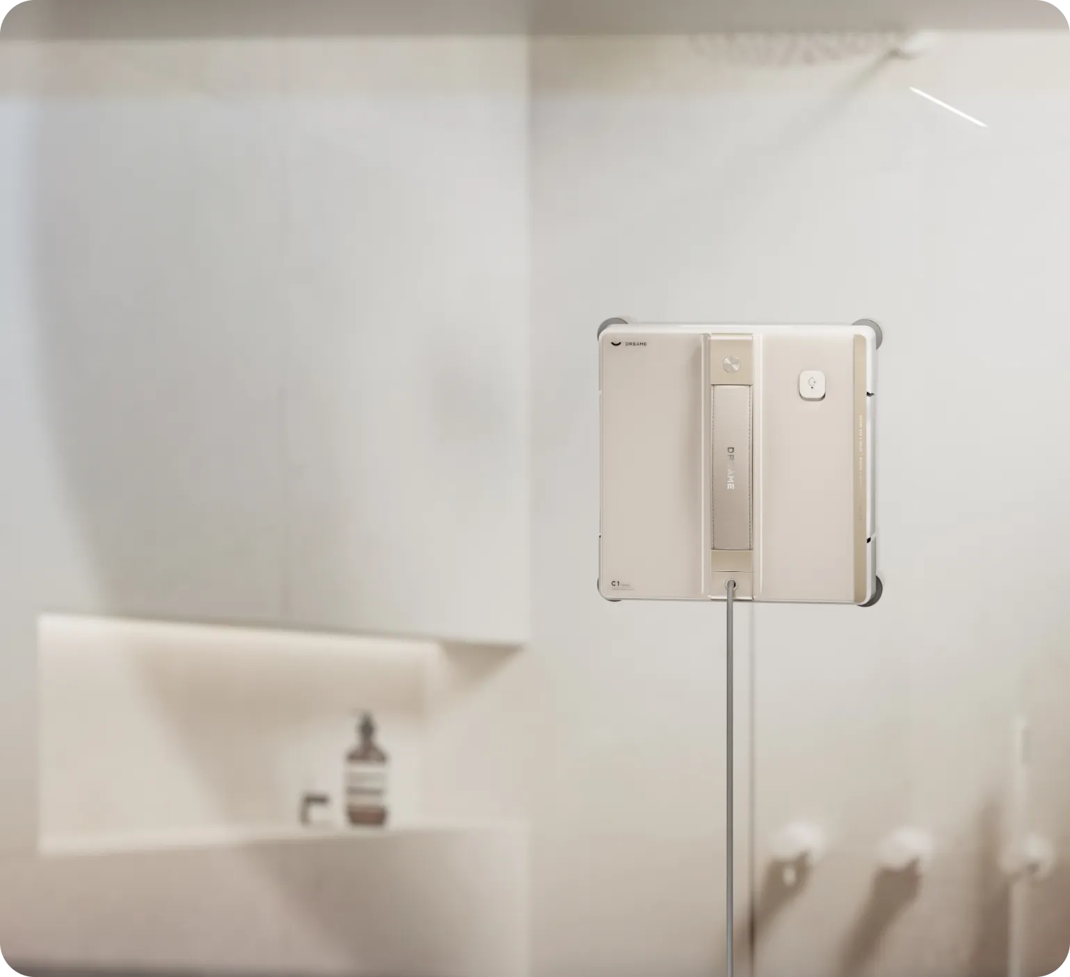 * Neigungswinkel der Fläche: Der C1 aktiviert automatisch den Reinigungsmodus, wenn der Neigungswinkel zwischen 60 und 120° liegt oder das Gerät auf die Scheibe gesetzt wird. Bei anderen Winkeln ist eine Fernsteuerung erforderlich.