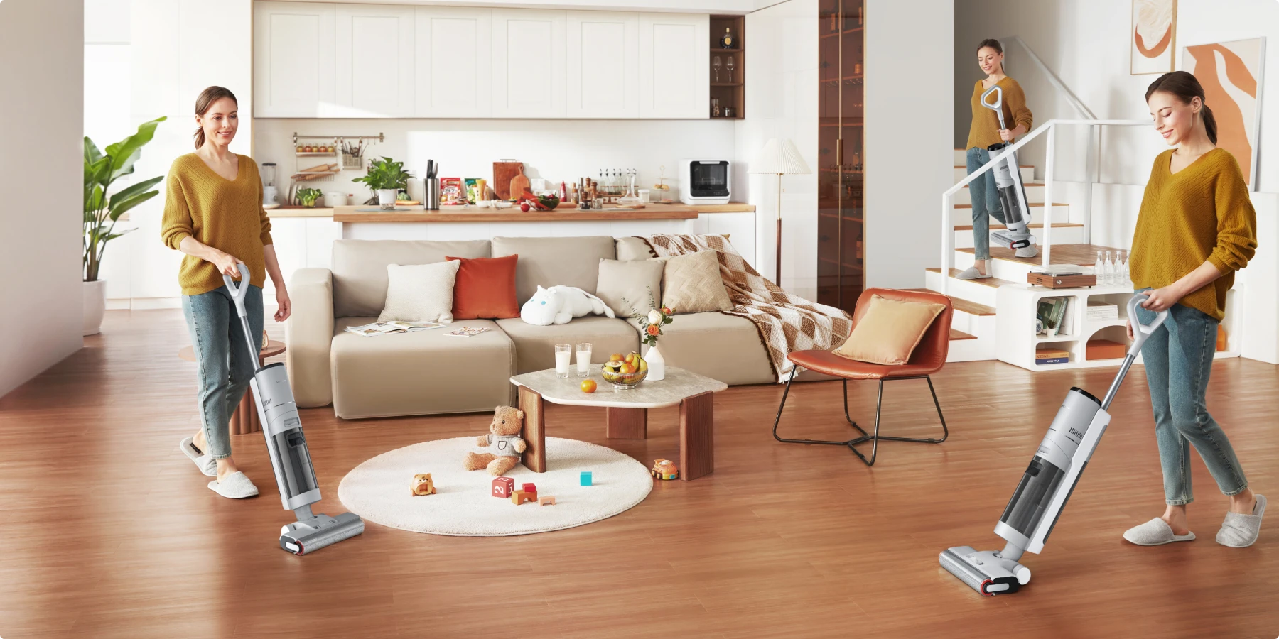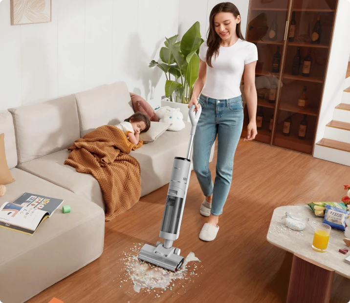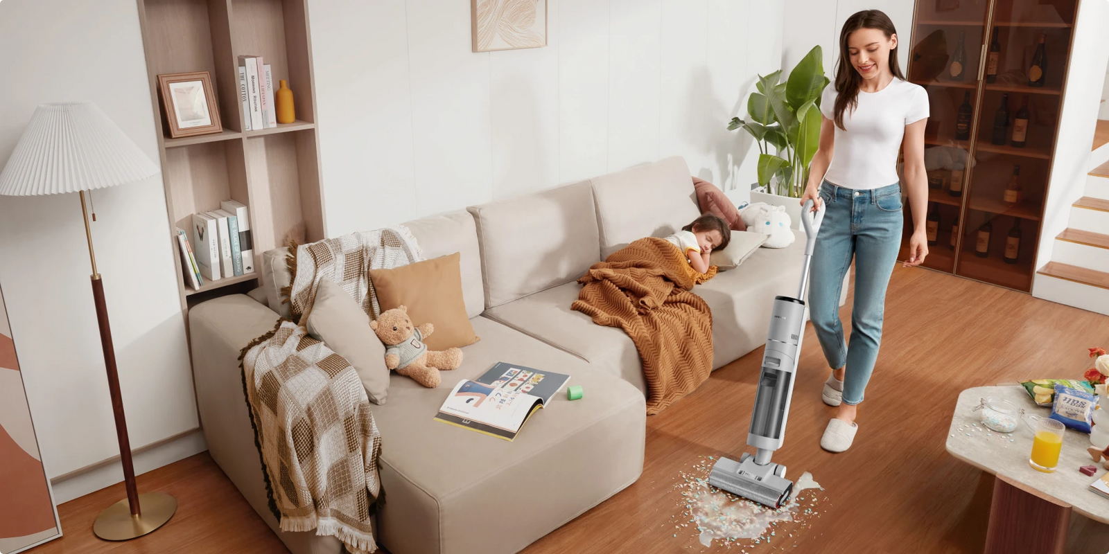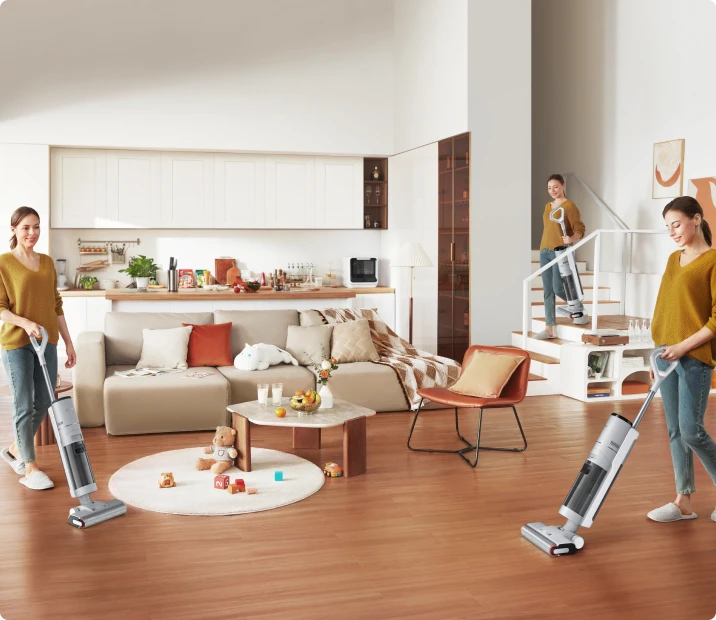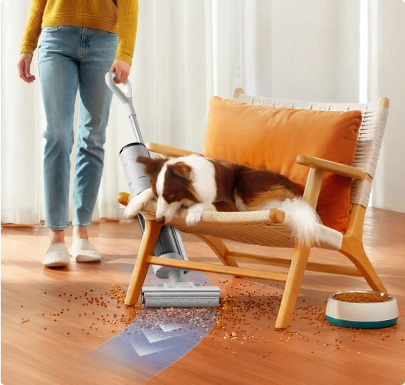 Reinigen Sie gründlich, ohne Haustiere, Kinder oder andere Familienmitglieder zu stören. Der bürstenlose Motor, das geräuscharme Luftkanaldesign und die weiche Bürste sorgen für eine unterbrechungsfreie Reinigung.