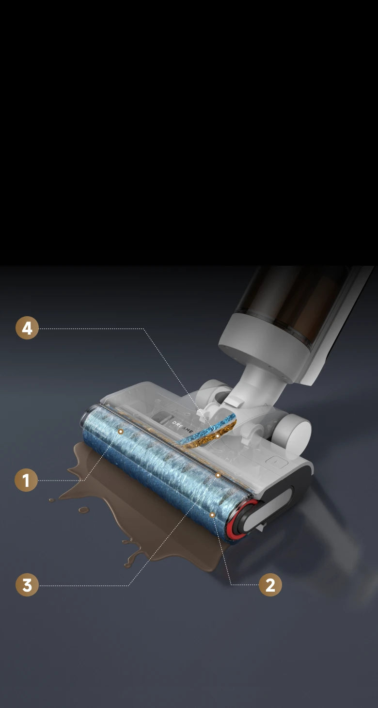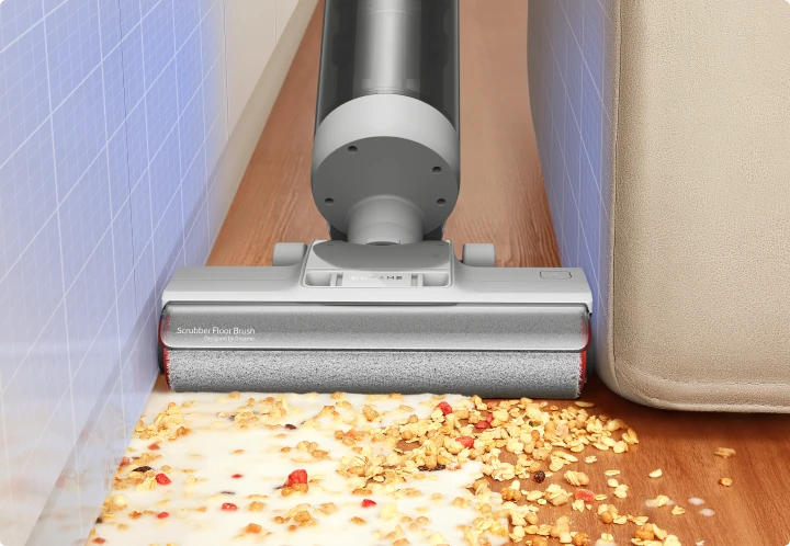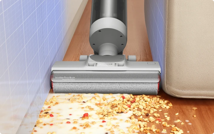 Die Doppel-Kantenreinigungsbürste reinigt eng entlang von Fußleisten und unter Schranktüren, sodass eine nahtlose Reinigung gewährleistet wird, bei der keine Rückstände in Lücken und Spalten zurückbleiben.