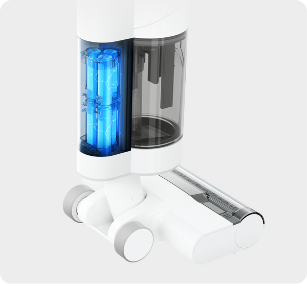 Der H11 kann alleine stehen und nach dem Saubermachen einfach abgestellt werden. Stellen Sie den Staubsauger einfach wieder in die Dockingstation, und der Ladevorgang beginnt sofort. Darüber hinaus bietet die Ladestation zusätzlichen Platz für die Aufbewahrung von Zubehör.