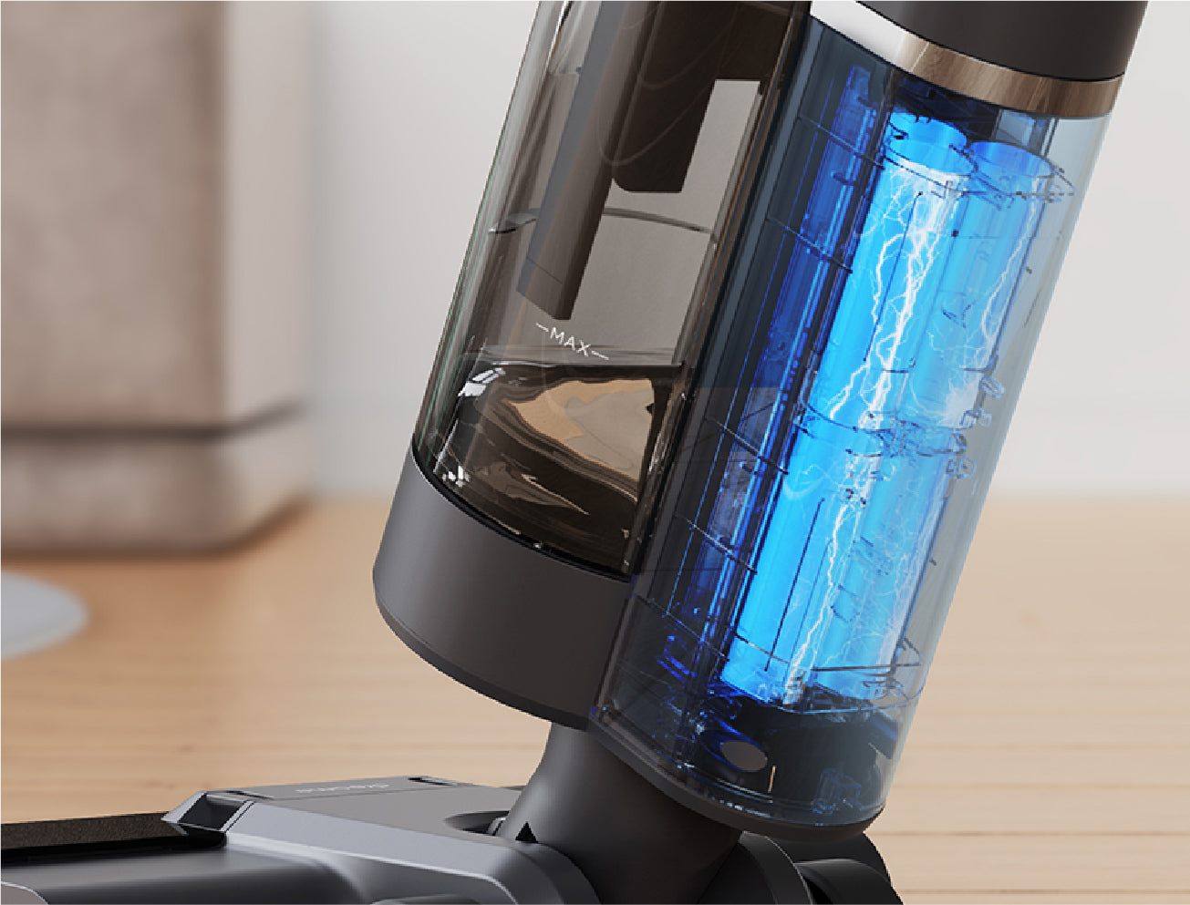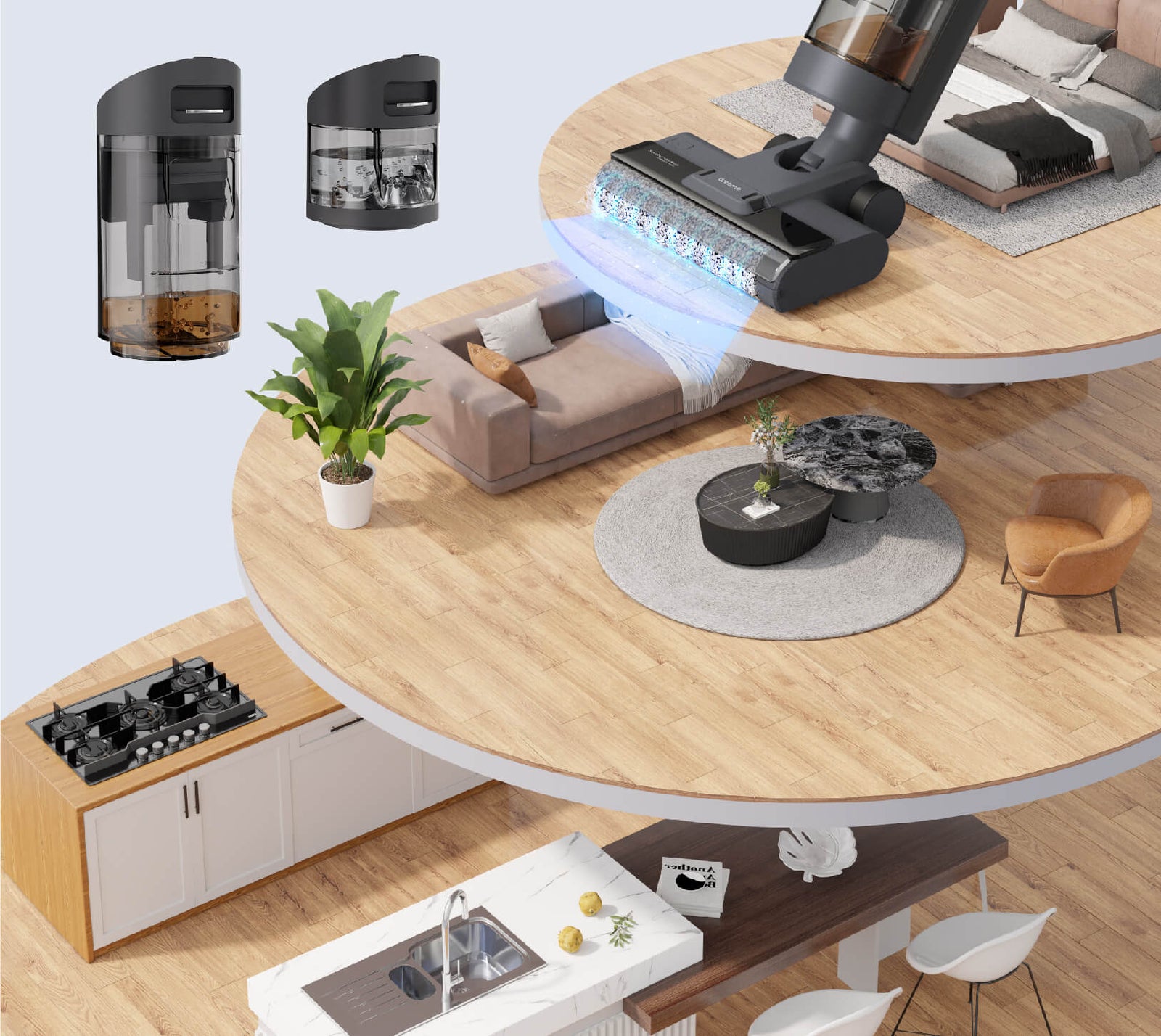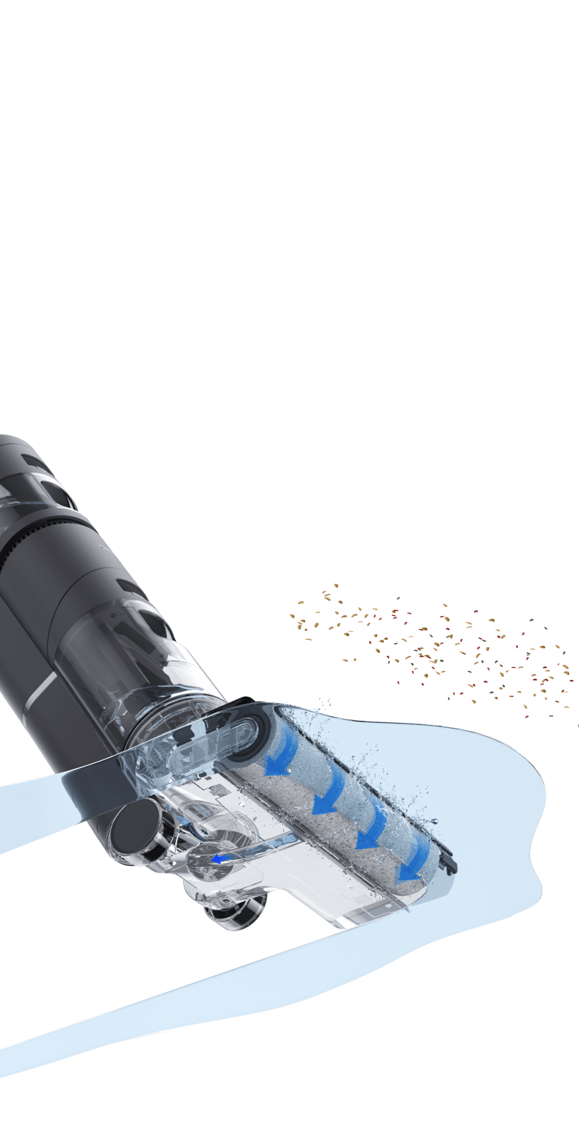 • Das fortschrittliche Echtzeit-Wasserzirkulationssystem bietet eine effiziente All-in-One-Reinigung zum gleichzeitigen Saugen, Reinigen und Spülen