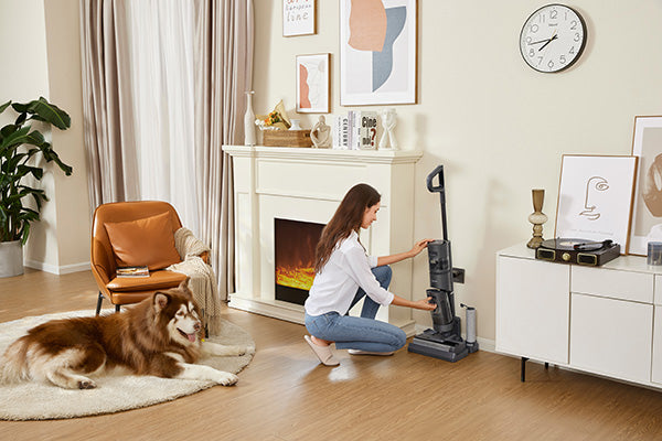 • Es reinigt sich selbst: Drücken Sie einfach die integrierte Spezialtaste, um die automatische Reinigung der Bürstenwalze zu starten.