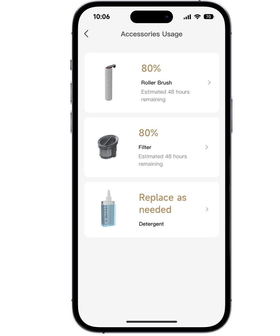 *Automatische Anpassung: Dieser über die Dreamehome-App wählbare Modus ist generell auf den Standardmodus eingestellt, wechselt jedoch in den Tiefenreinigungsmodus, wenn eine der folgenden Bedingungen erfüllt ist: 1. Die Betriebszeit beträgt 15 Minuten 2. Die Schmutzerkennung dauert 3 Sekunden.