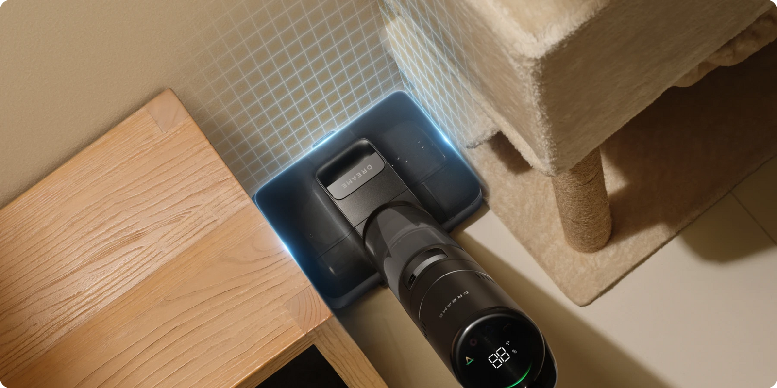 H15 Pro FoamWash reagiert auf Ihre Bewegungen: Der KI-gesteuerte Roboterarm senkt sich in nur 0,2 Sekunden ab und sorgt für eine präzise dreifache Kantenreinigung, ohne eine Stelle auszulassen.