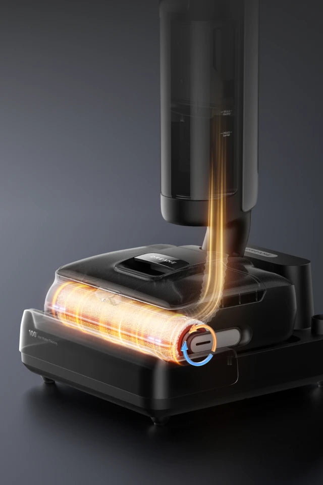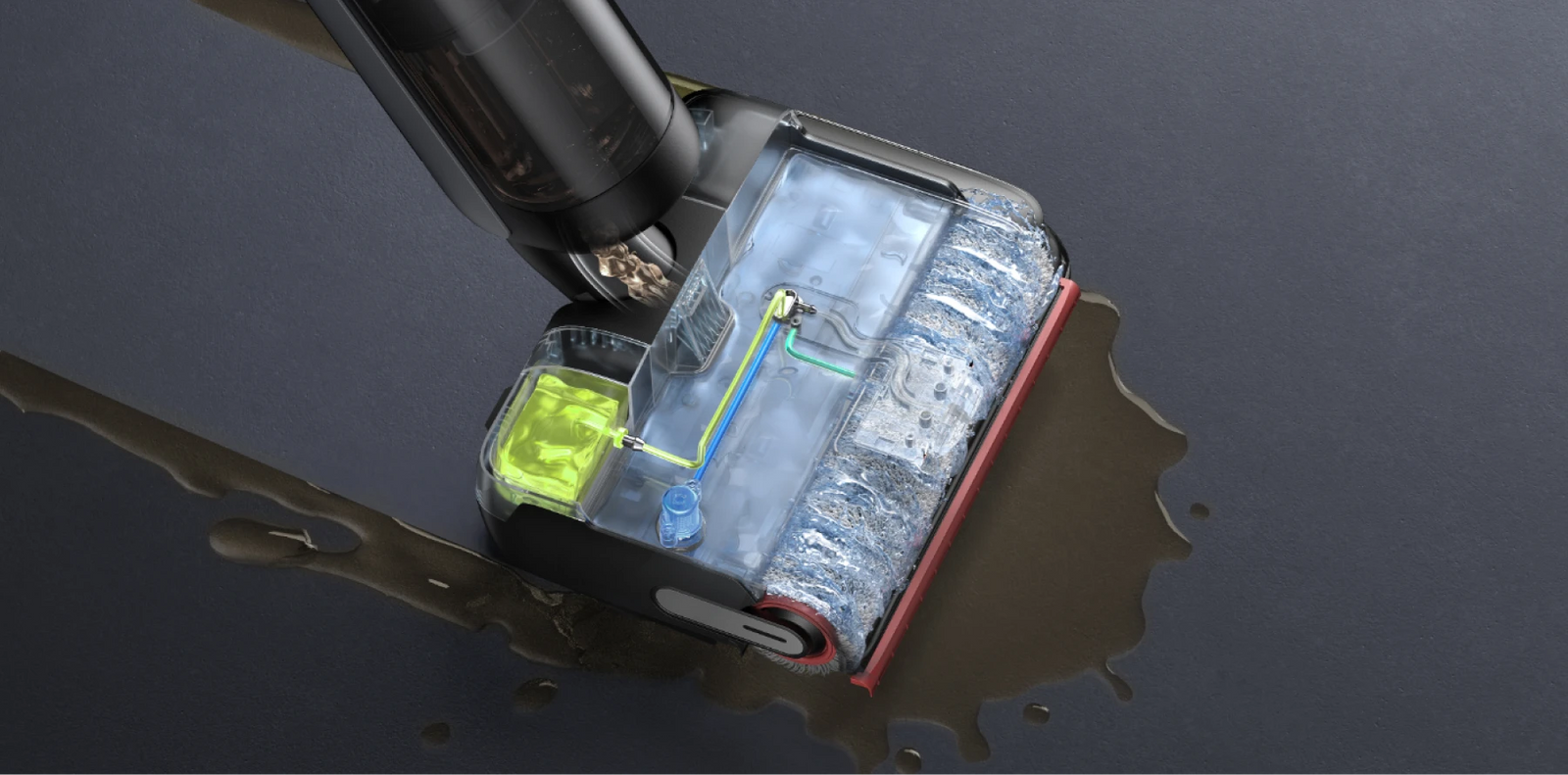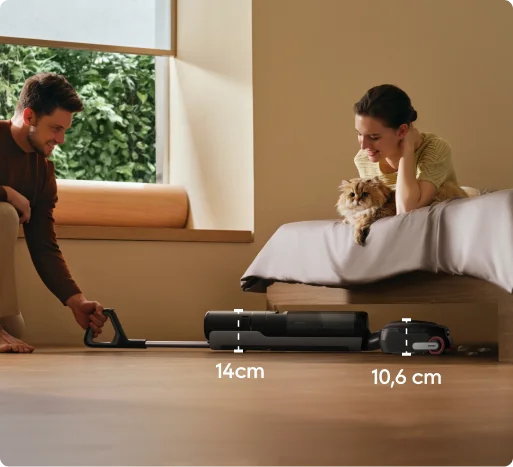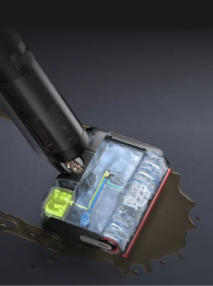 Der H15 Pro FoamWash lässt sich um volle 180°* neigen und gelangt so mühelos unter Sofas und niedrige Möbel. Der Schmutzwasserbehälter fängt gebrauchtes Wasser sicher auf und schützt so den Motor, während er mit seiner starken Saugkraft von bis 23.000 Pa selbst die engsten Stellen reinigt.