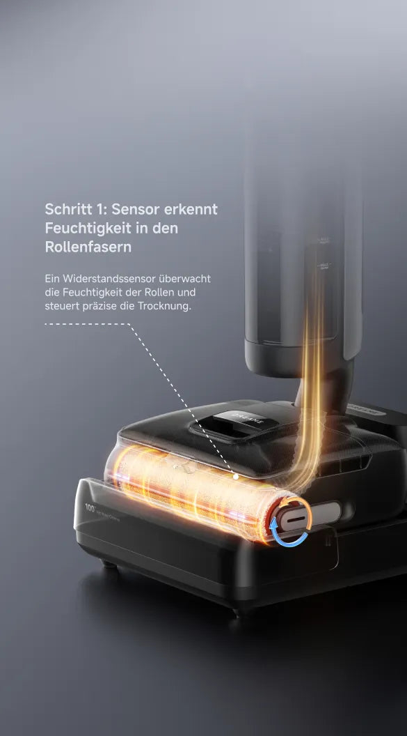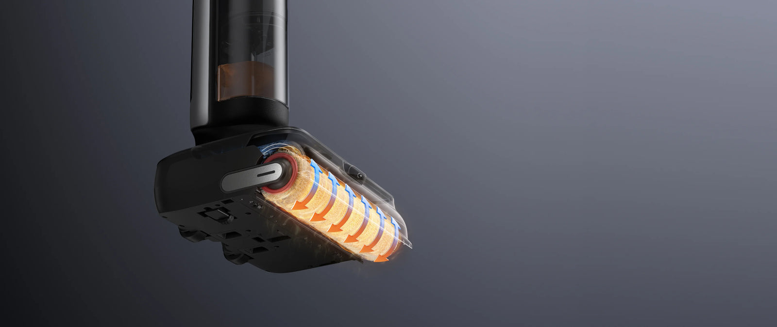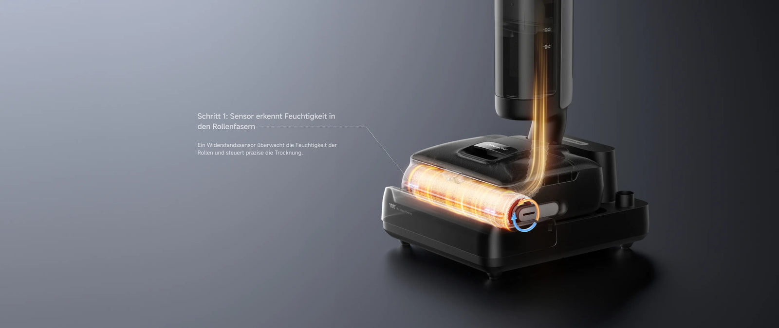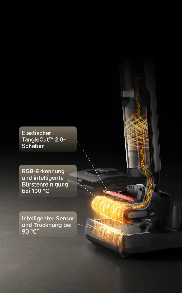 Die Bürste mit 2-Richtungsrotation simuliert die manuelle Reinigung für gründlichere Ergebnisse. Sie entfernt Schmutz, verhindert aufgewickelte Haare und hält die Bürstenabdeckung sauber – nach dem Trocknen ist sie wieder weich, flauschig und bereit für den nächsten Einsatz.