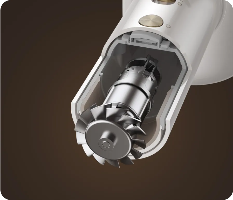 Ein leistungsstarker bürstenloser Motor mit optimierter vertikaler Struktur sorgt für einen starken Luftstrom. Zudem ist er mit weniger als 76 dB besonders leise. Trocknen Sie Ihr Haar, ohne Ihre Umgebung komplett auszublenden.
