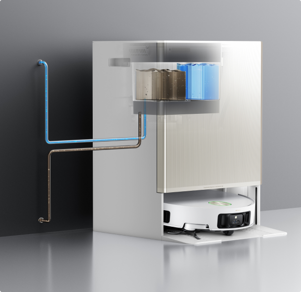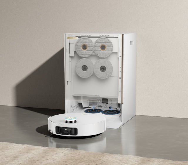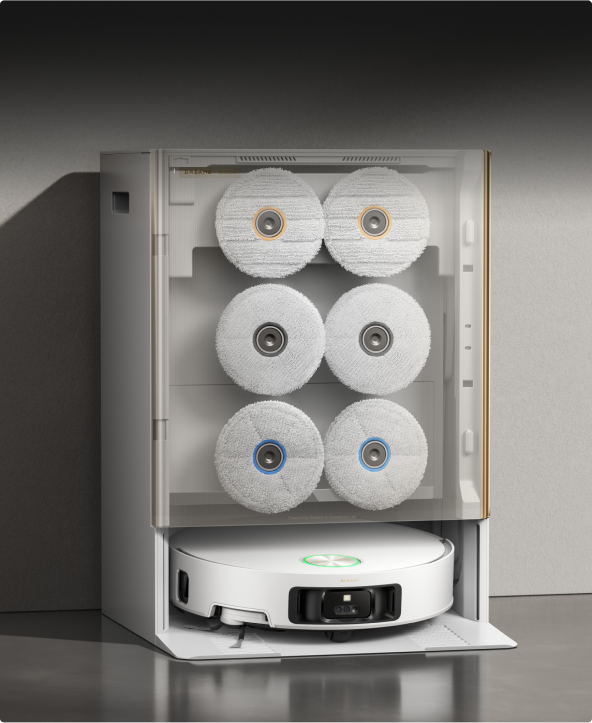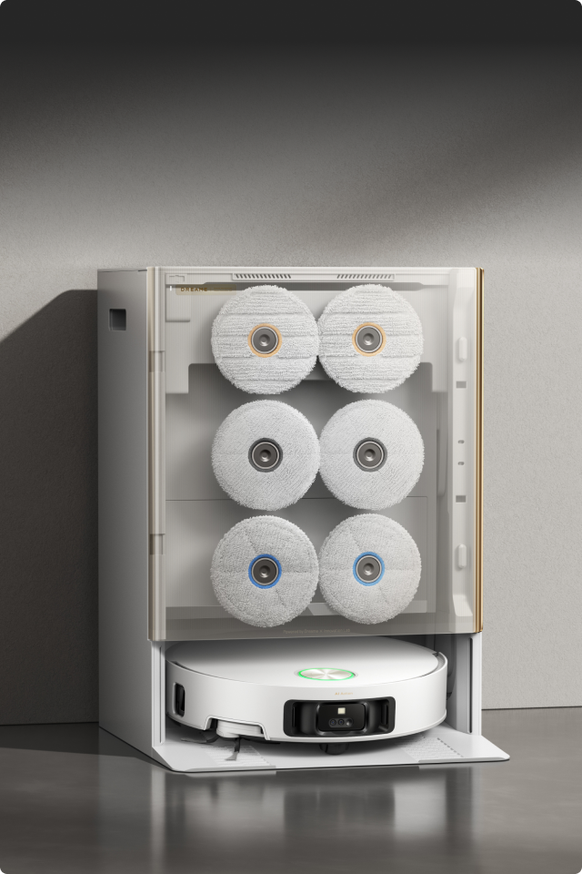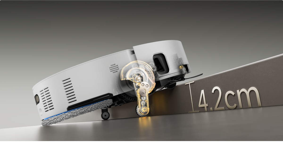 *10,5 mm: Basierend auf Daten aus unserem internen Labor. Beim Anheben des Wischmopps verändert sich die Höhe des Saugroboters um 10,5 mm.