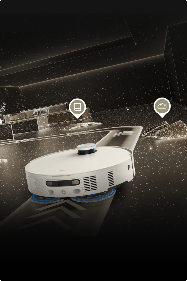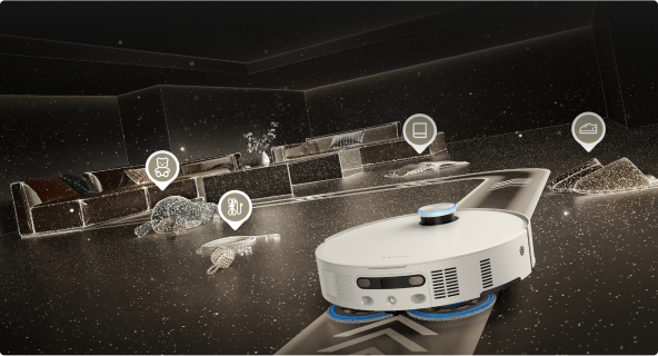 Dank strukturiertem 3D-Licht und KI-Unterstützung erkennt der Matrix10 Ultra im Nu mehr als 240 Arten von Gegenständen*. Mithilfe einer detaillierten 3D-Karte weicht der Roboter präzise kleineren Hindernissen wie Kabeln und Socken aus, während er größere Objekte wie Schuhe oder Ladestationen sicher umgeht.