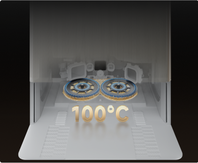 * 100 °C: Die Wassertemperatur des PTC-Systems des Waschbretts kann nach dem Erwärmen bei Raumtemperatur (ca. 23 °C) 100 °C erreichen, basierend auf Daten aus unserem internen Labor. Die tatsächliche Leistung kann abweichen.