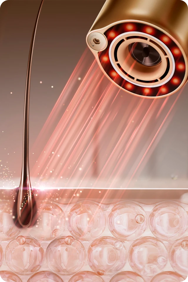*1.064 nm und 633 nm: Die Wellenlängen des roten Lichts 1.064 nm und 633 nm wurden von SGS-CSTC Standards Technical Services Co., Ltd. (Bericht Nr. GZCPCH25004166) hinsichtlich ihrer Wirksamkeit bei der Belebung der Mikrozirkulation der Kopfhaut und der Stärkung der Haargesundheit getestet und zertifiziert.