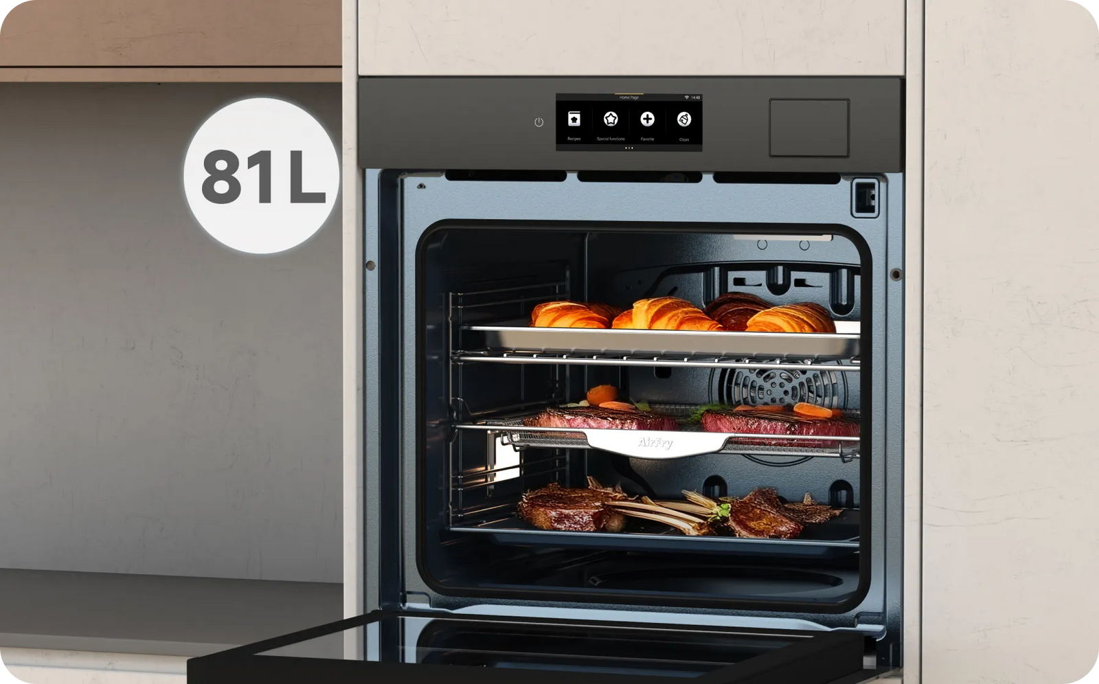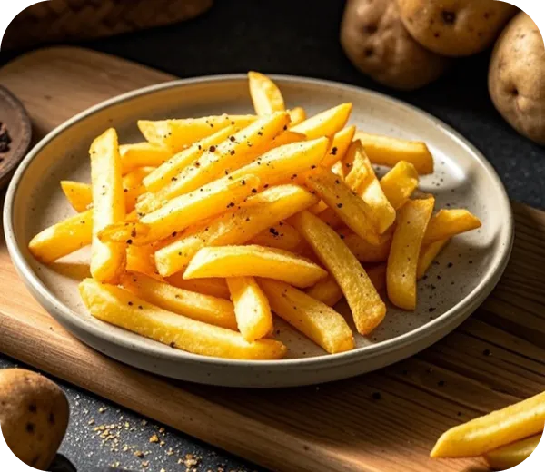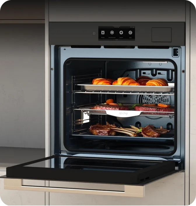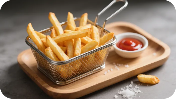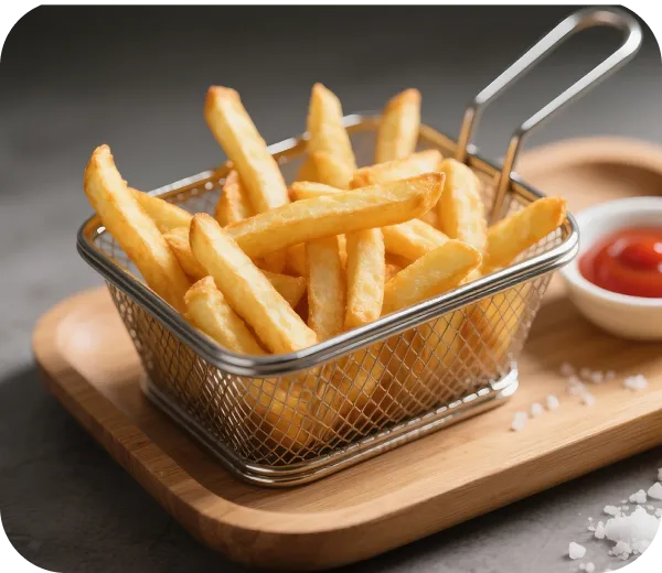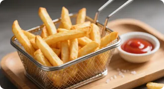 *75 %: Unter internen Laborbedingungen getestet. Die Fettreduzierung bezieht sich auf den Vergleich mit dem herkömmlichen Frittieren von tiefgekühlten Pommes frites. Die tatsächlichen Ergebnisse können je nach Inhaltsstoffen und Garmethode variieren.