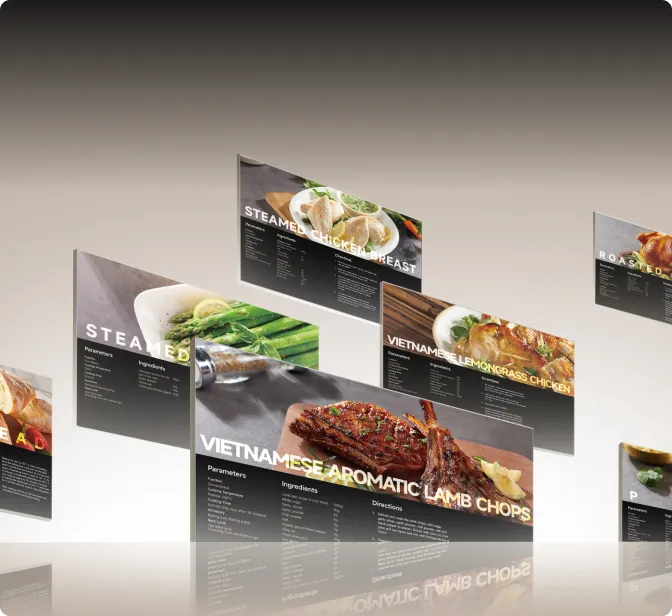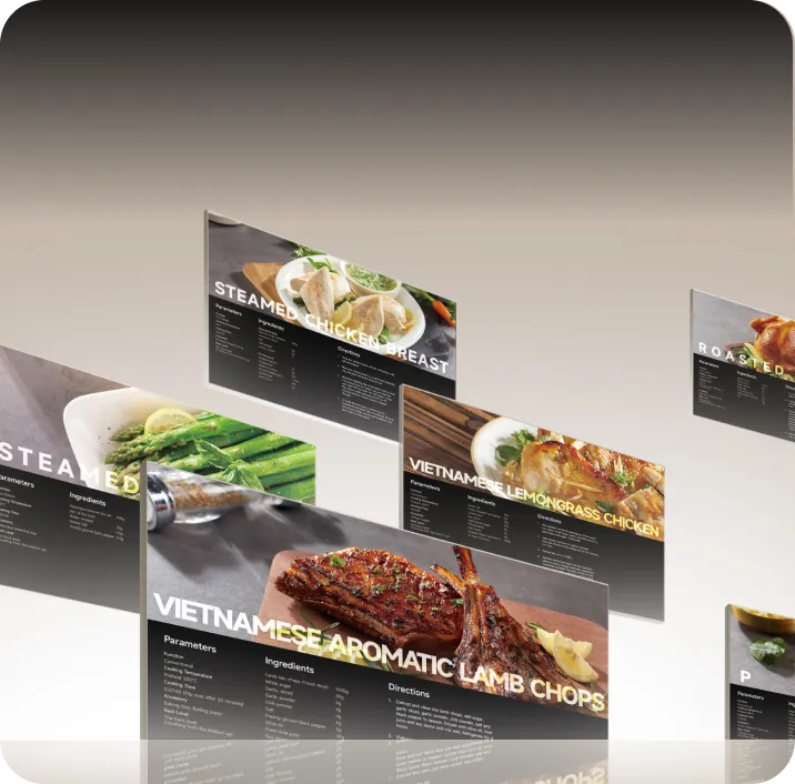 *Die Lebensmittelbilder dienen nur als Referenz. Die tatsächlichen Kochergebnisse können je nach Zutaten, Einstellungen und Nutzungsbedingungen abweichen.