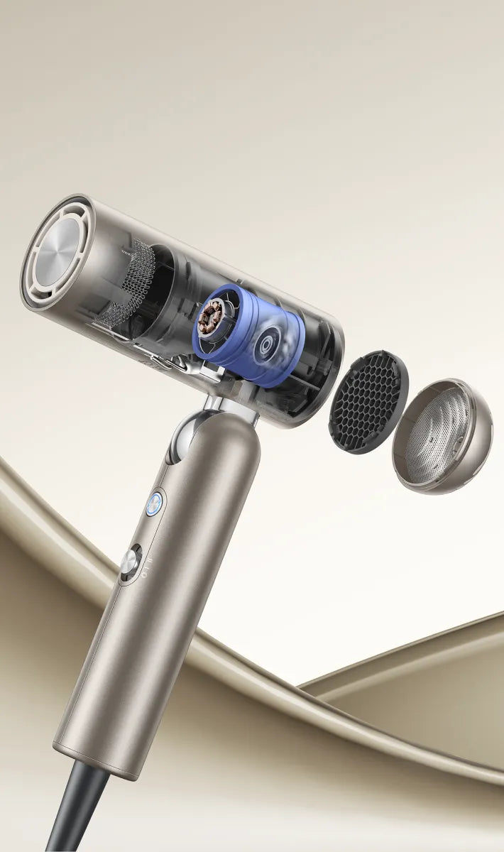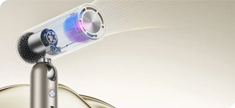 Der NTC-Thermistor und der Mikroprozessor halten eine sichere Temperatur von unter 57 °C*. Diese Teile führen im Warmmodus 300 Kontrollen pro Sekunde* für sicheres und entspanntes Föhnen durch.