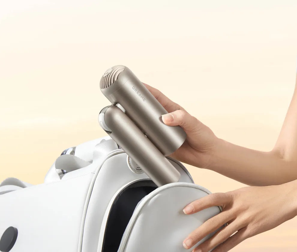 Diese schicke Lösung zur Aufbewahrung ergänzt perfekt das luxuriöse Äußere des Haartrockners in Ledertextur.