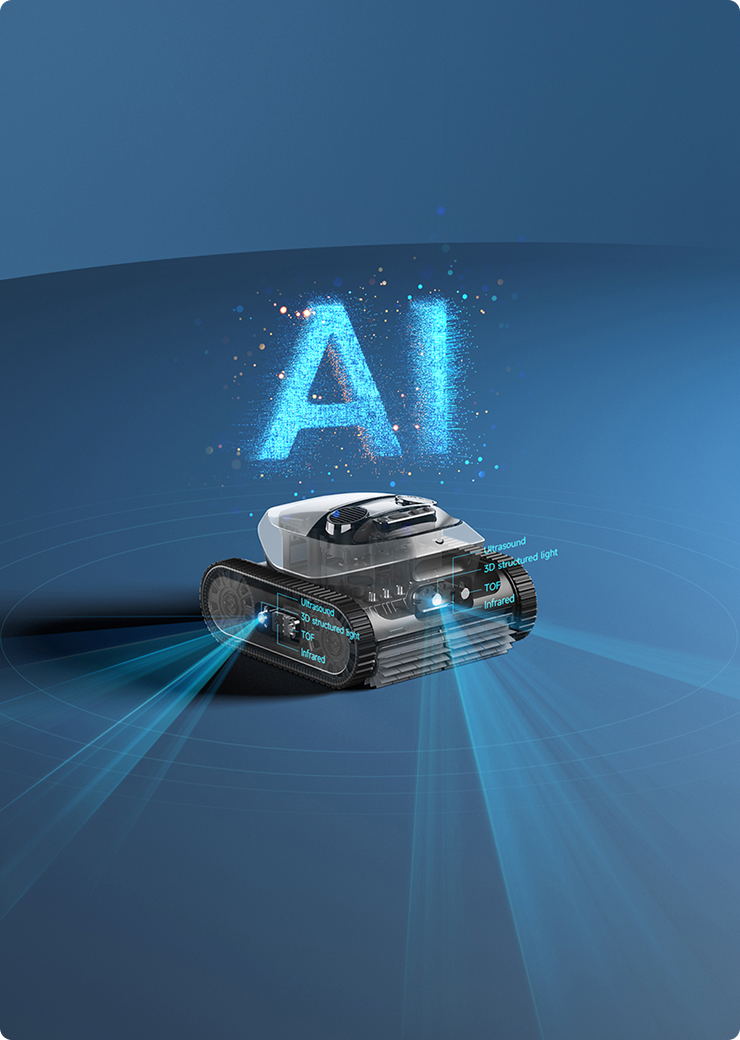 Poolreinigungsroboter mit Dreifach-Verbindungsstellen-Erkennungssystem.