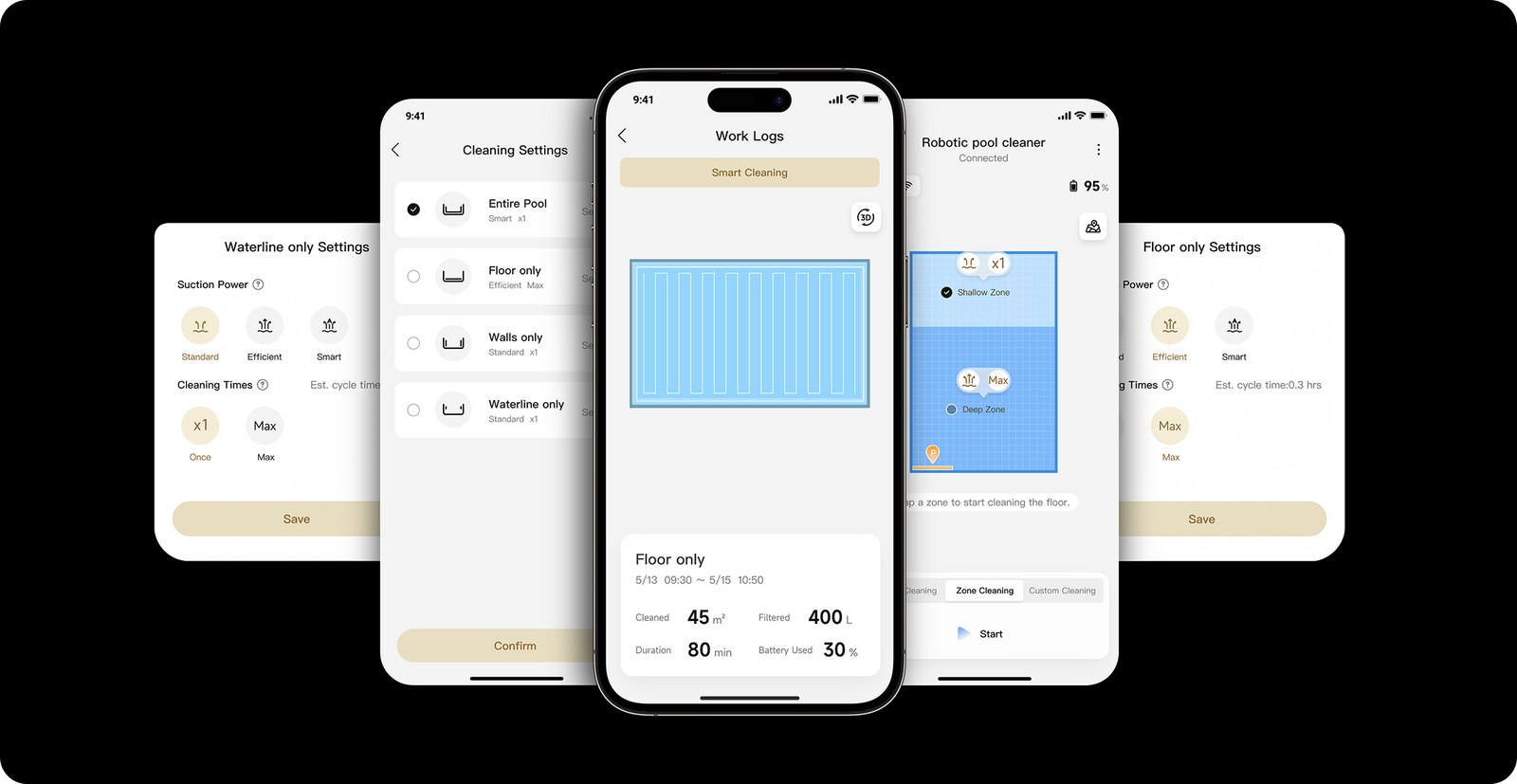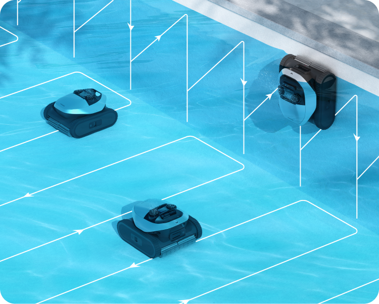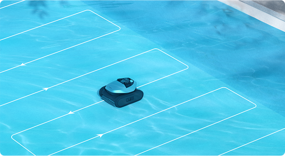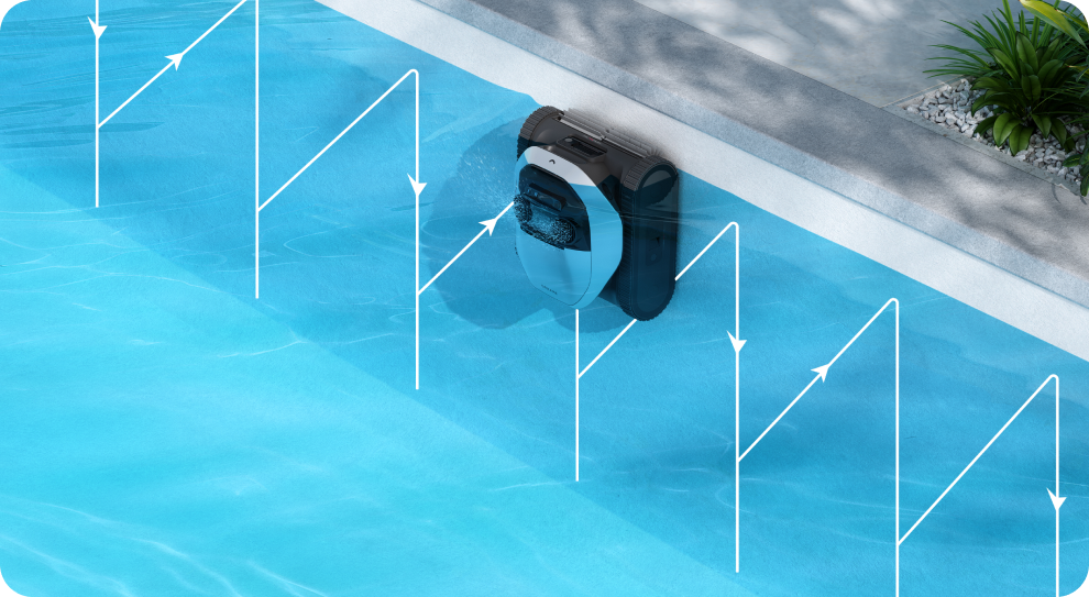 Der Z1 erkennt automatisch die Poolform und teilt den zu reinigenden Bereich intelligent in Reinigungszonen ein. Jede dieser Reinigungszonen wird mithilfe eines anpassungsfähigen S-förmigen Pfades gereinigt, wodurch sowohl die Effizienz als auch die Gründlichkeit maximiert werden.