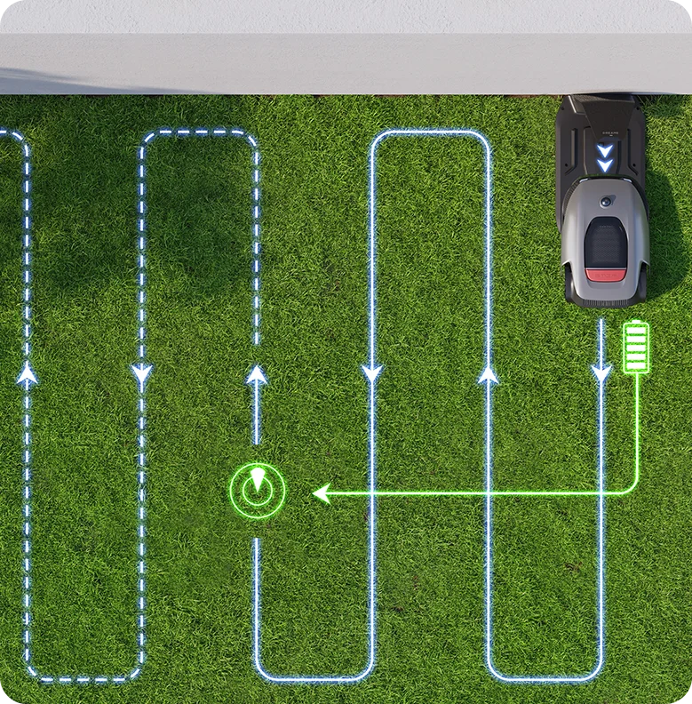 Wenn der A1 Regen erkennt, kehrt er automatisch zur Ladestation zurück und nimmt die unterbrochene Mähaufgabe wieder auf, sobald der Regen aufgehört hat.