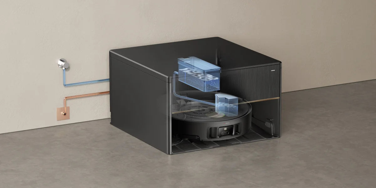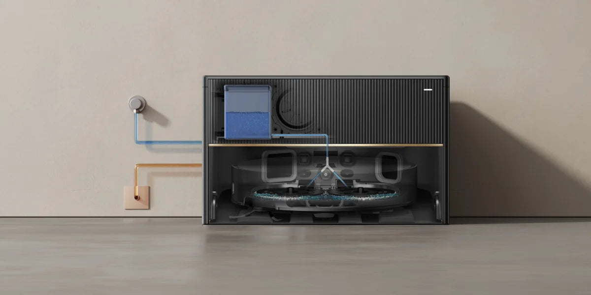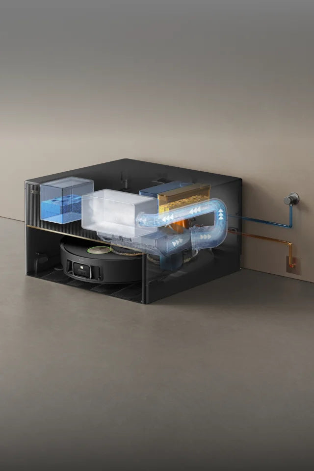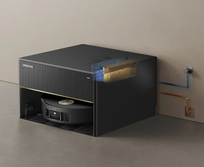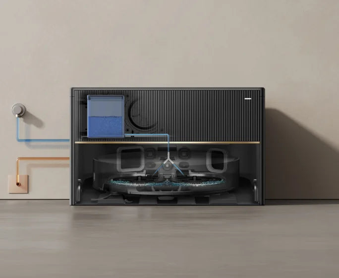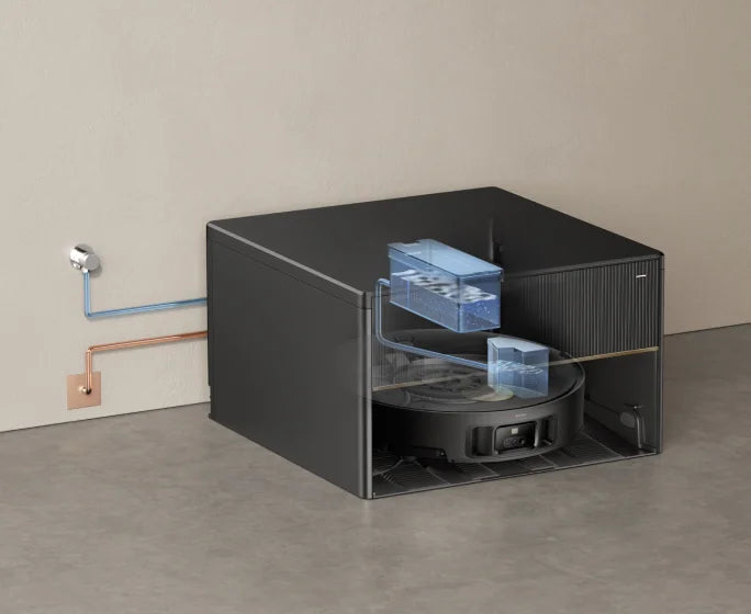 *Das System zum automatischen Nachfüllen und Entleeren: Im Lieferumfang des Saugroboters enthalten. Separate Montage erforderlich.