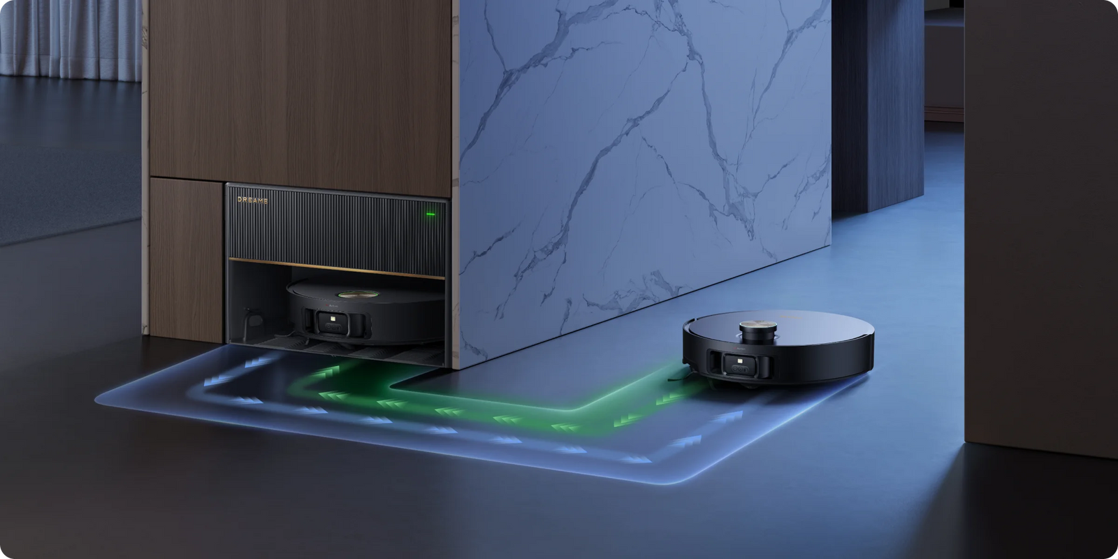 *Intensiver Teppichreinigungsmodus: verfügbar in der Dreamehome-App. Nach der Einstellung reduziert der Saugroboter die Geschwindigkeit und reinigt den Teppich zweimal.