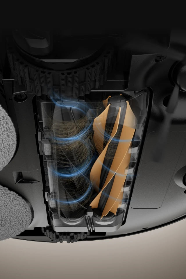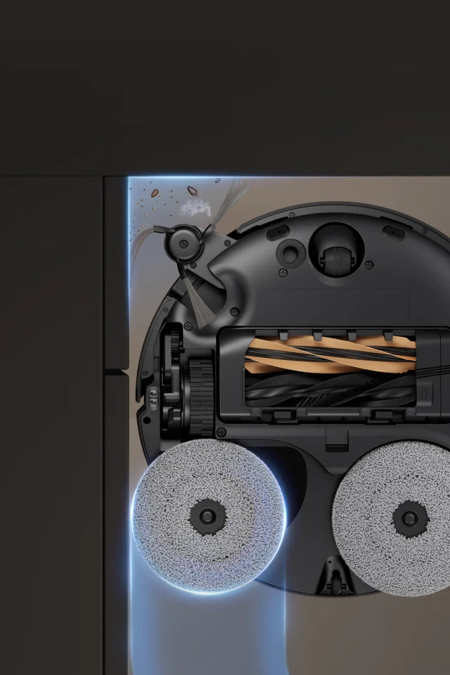 Während des Wischvorgangs hebt TripleUp Tech sowohl die Seiten- als auch die Hauptbürsten um bis zu 10 mm* bzw. 5 mm an, sodass die Wischmopps tiefer abgesenkt werden und auch hartnäckige Flecken wie Sojasauce und Kaffee entfernen können. Dadurch bleiben die Bürsten trocken, was unangenehme Gerüche im Staubbehälter vermeidet – damit Ihr Staubsauger seine volle Leistung erbringt und frisch bleibt.